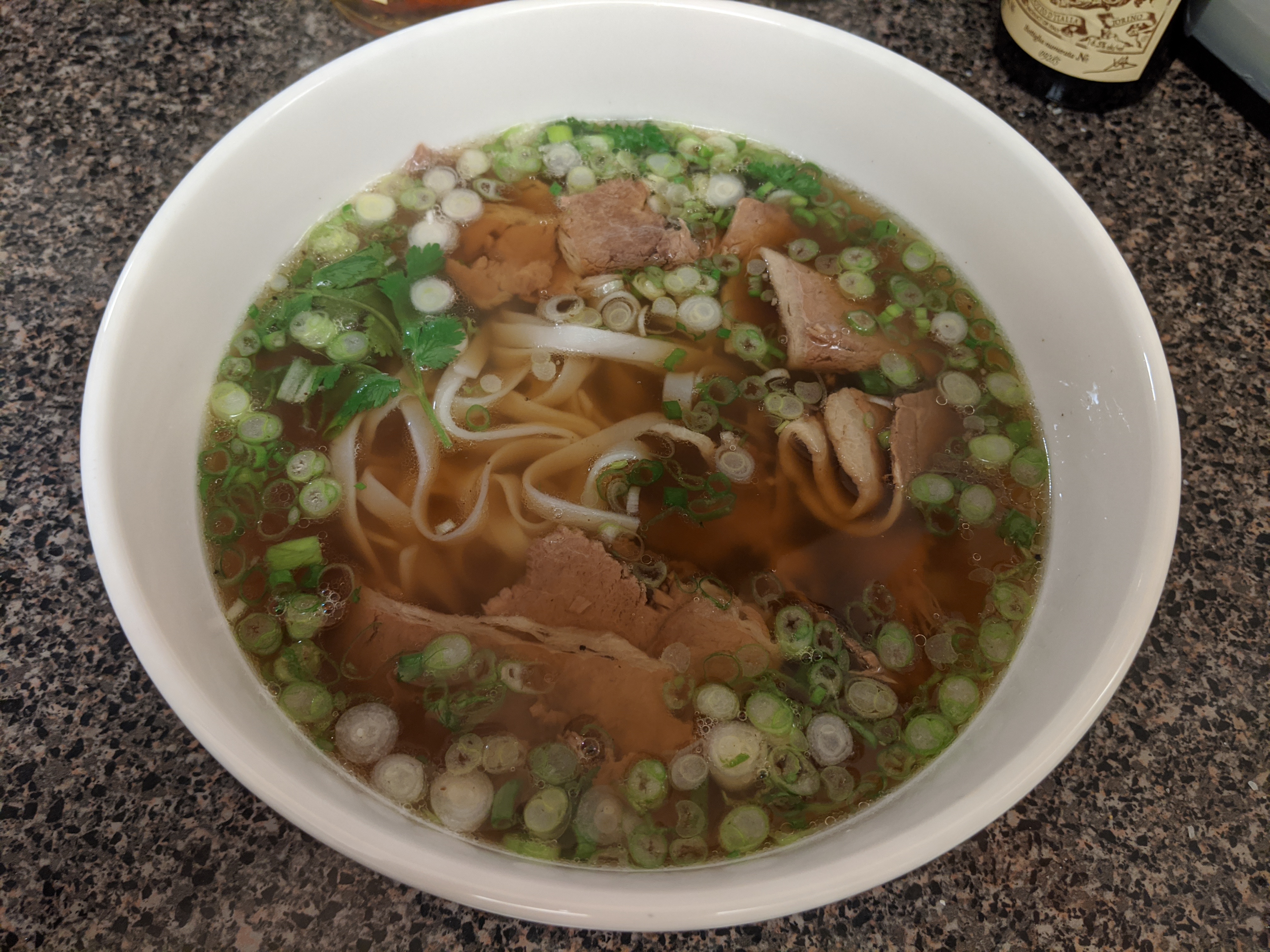 Chicken broth with fish sauce and ginger. Pickled yellow chillies alongside. This is the original smoked tofu from another meal which I used the leftovers in this soup.