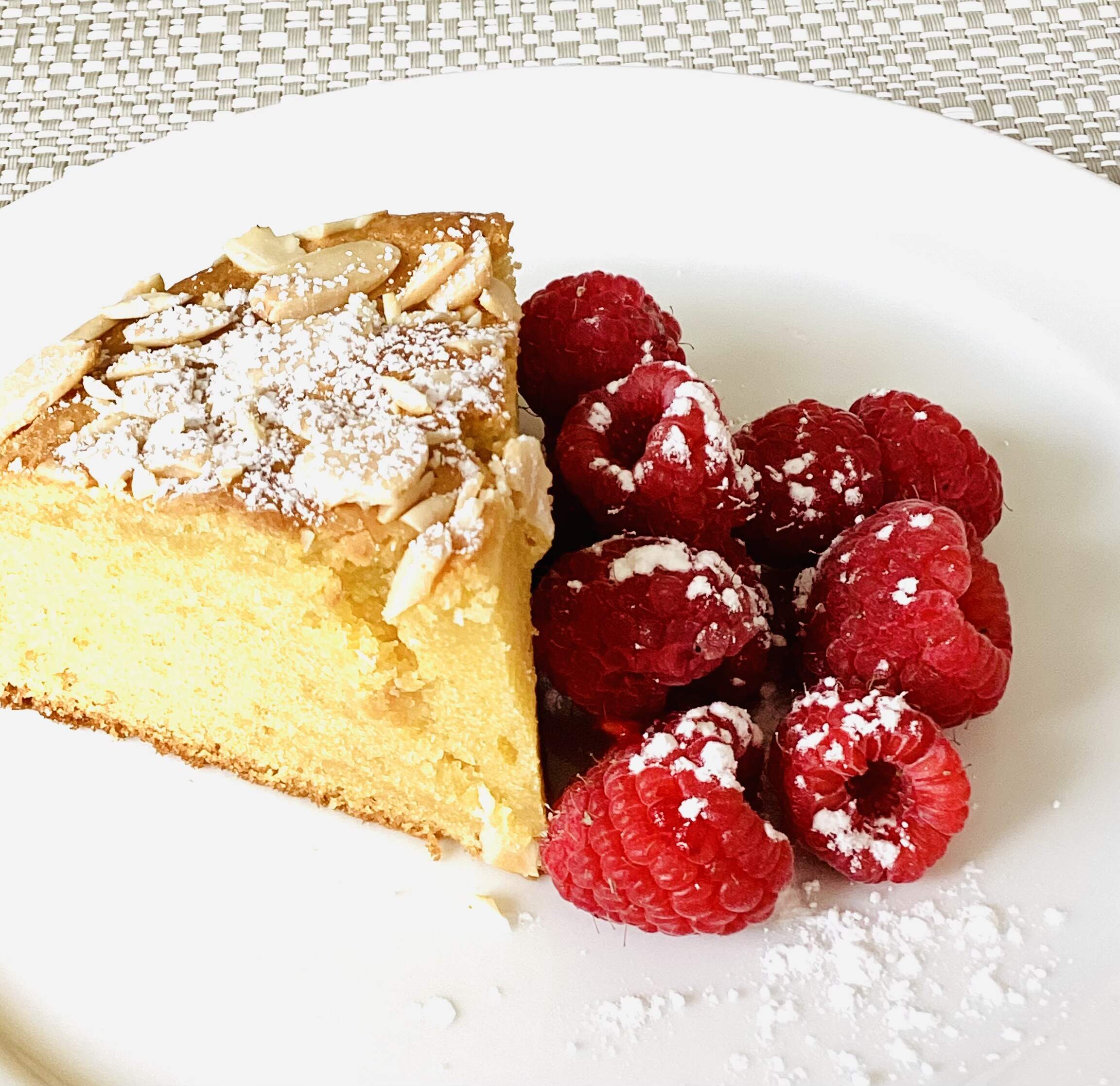 Dessert was a slice of yesterday’s Clementine cake with a little sour cream and a dab of jam.