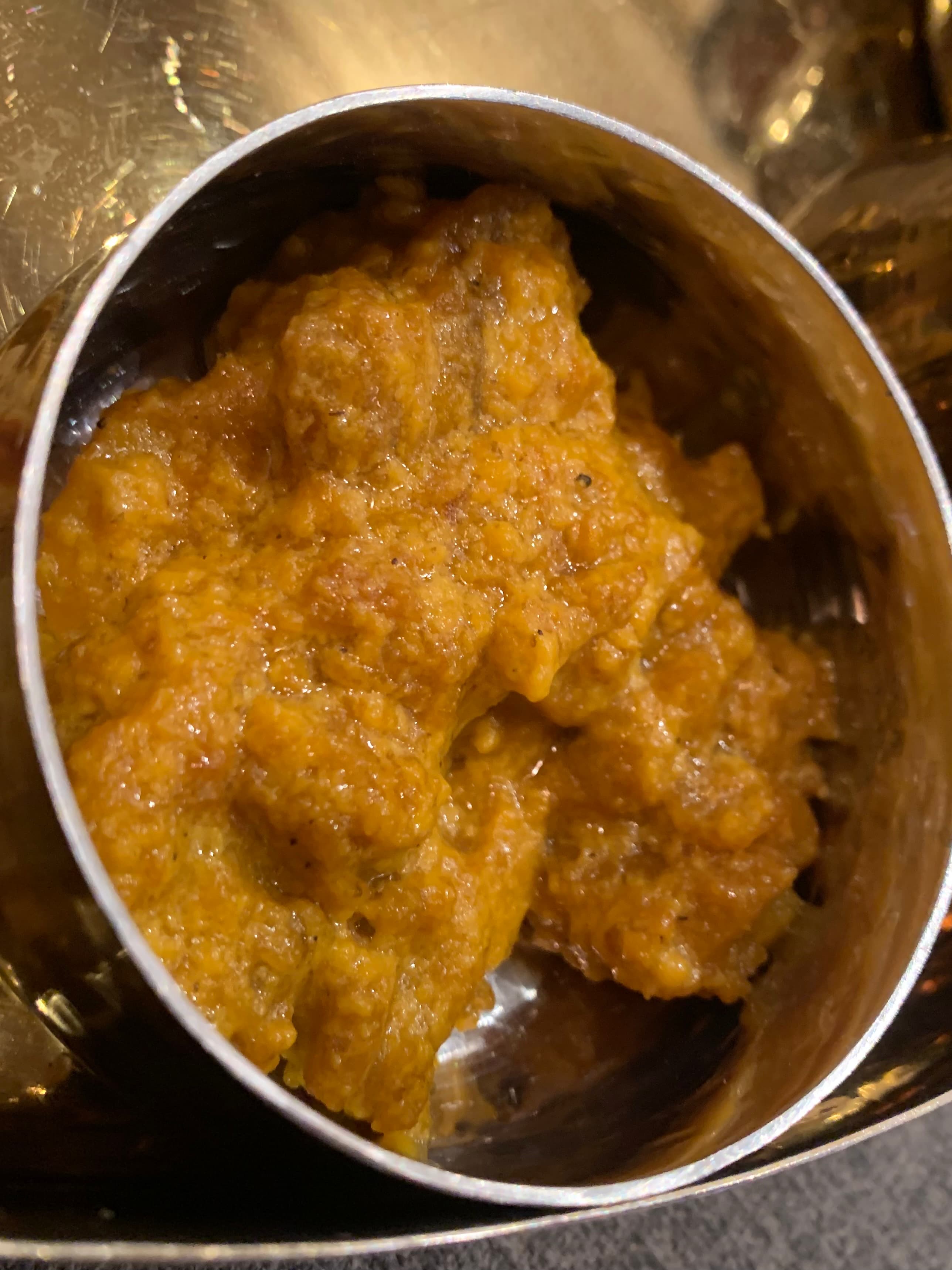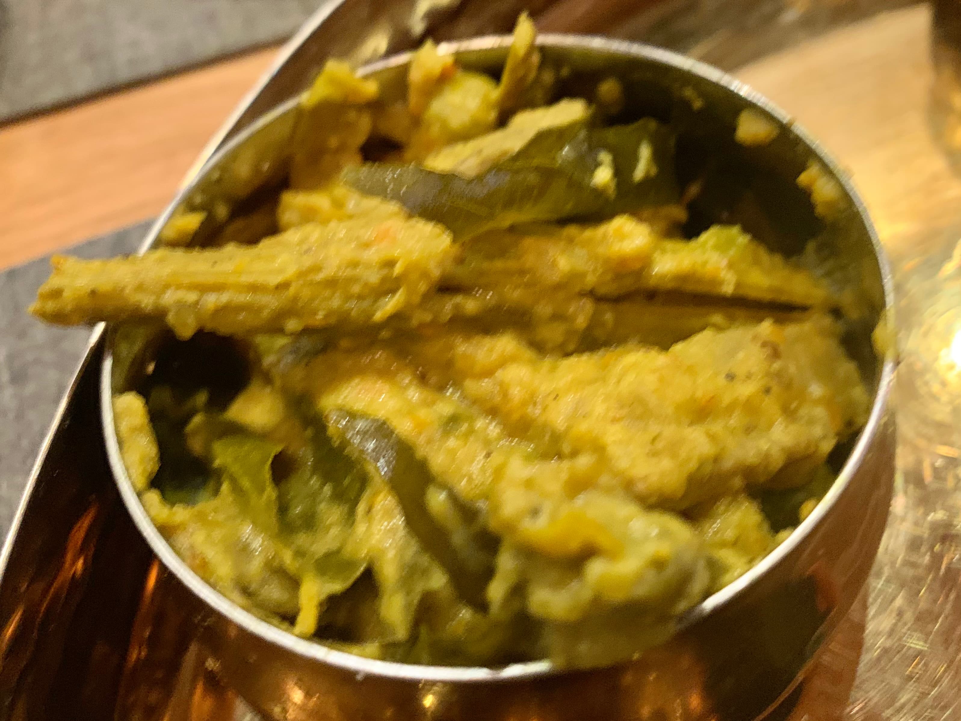 In any case, I had yet another delivery from them last Wednesday. I was originally to meet two friends at Chatti, but it looked like they’d be delayed, so I canceled that and ordered in from Lungi. The paneer ghee roast was as good as before, and the eggplant moju – new to me – was superb. The liver pepper fry might not be for everyone – somewhat rubbery liver – but it was for me, reminding me of the liver I ate in my youth. The drumstick sambhar was very tasty, but I’d have preferred an extra drumstick or ten. Their appams/hoppers are quite good, even after the damage they suffer from delivery.
