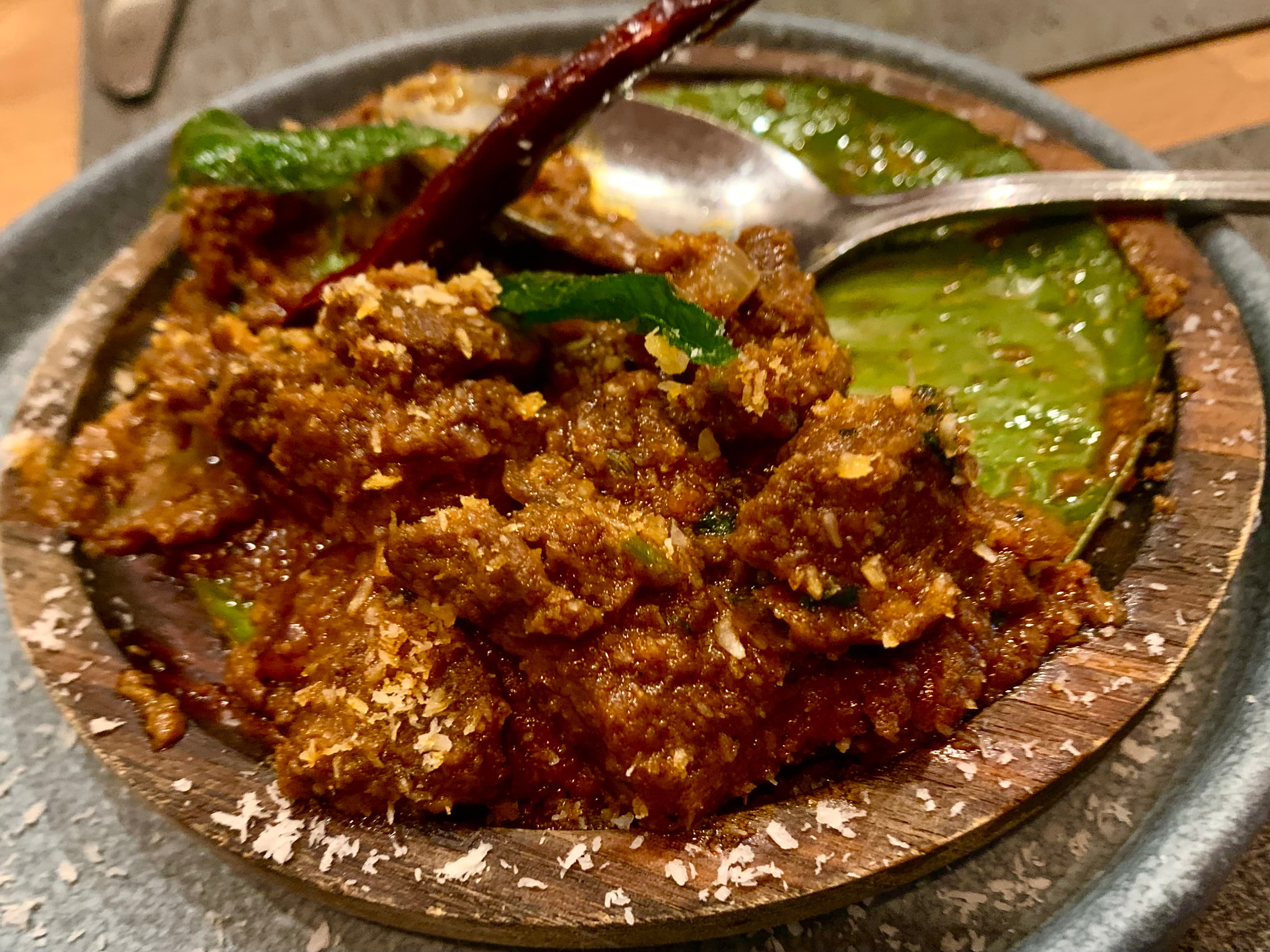 Added the classic Kerala beef fry to that, because why not. Almost added a curry too, and then paused, which was just as well, because we barely finished what we had
