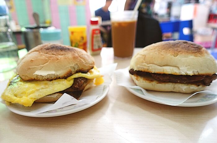 The most common breakfast spots in HK, Macau and Chinese cities near HK like Shenzhen and Dongguan have to be the cha chaan tengs, or HK-style cafes that offer an eclectic menu of Chinese noodles and Western-inflected breakfast plates & sandwiches. 150 years of British rule has had quite an impact on HK cuisine, with sometimes unusual combinations - thick French toasts topped with butter and drenched in syrup, macaroni soup with fried eggs and ham or sausages submerged at the bottom of the bowl, boiled Coke served hot in a teacup with a slice of lemon, etc.
