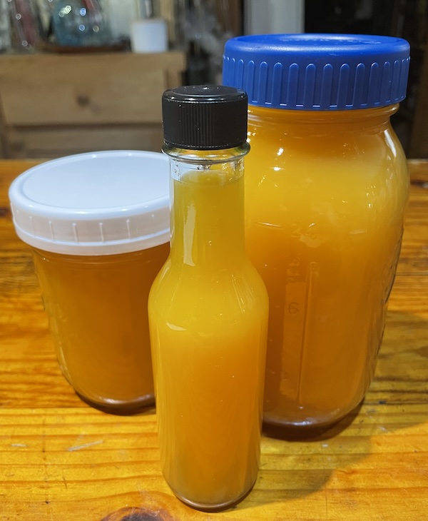 The flavor has notes of lemon and grapefruit. It’s very fresh, bright and juicy. Unless one is tolerant of high heat, this is best experienced by carefully slicing sections between the septa, getting none of the pale tissue so as to avoid the heat. It’s crunchy and, so far, appears to hold a bright yellow color in vinegar. Time will tell if this persists. My intention is to make one or more hot sauces with it. I may try fermenting some to see how the flavor profile evolves.