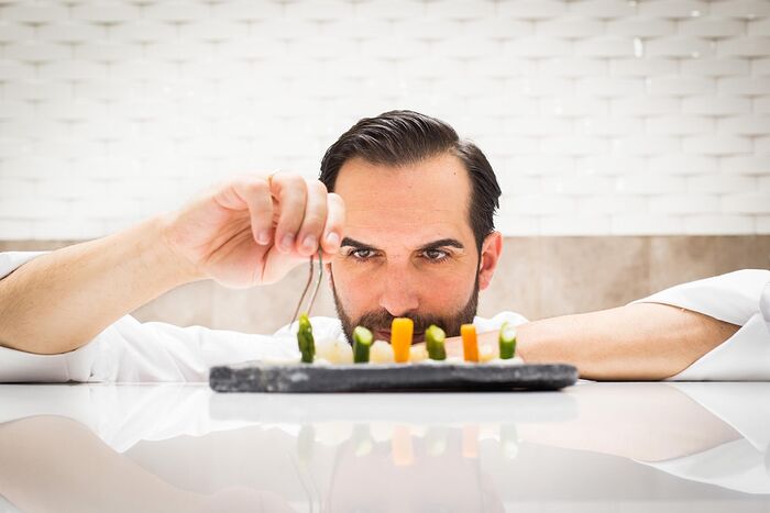 Executive Chef Mario Sandoval draws on the bounty of local seasonal products which he turns into varios tasting cartes with up scale taste explosions, however, profoundly steeped in tradition with evolutionary twists. The exquisite venue, also houses an incredible wine celler where the guests are invited to have a libation of choice and a palate opener. Our lunch was: