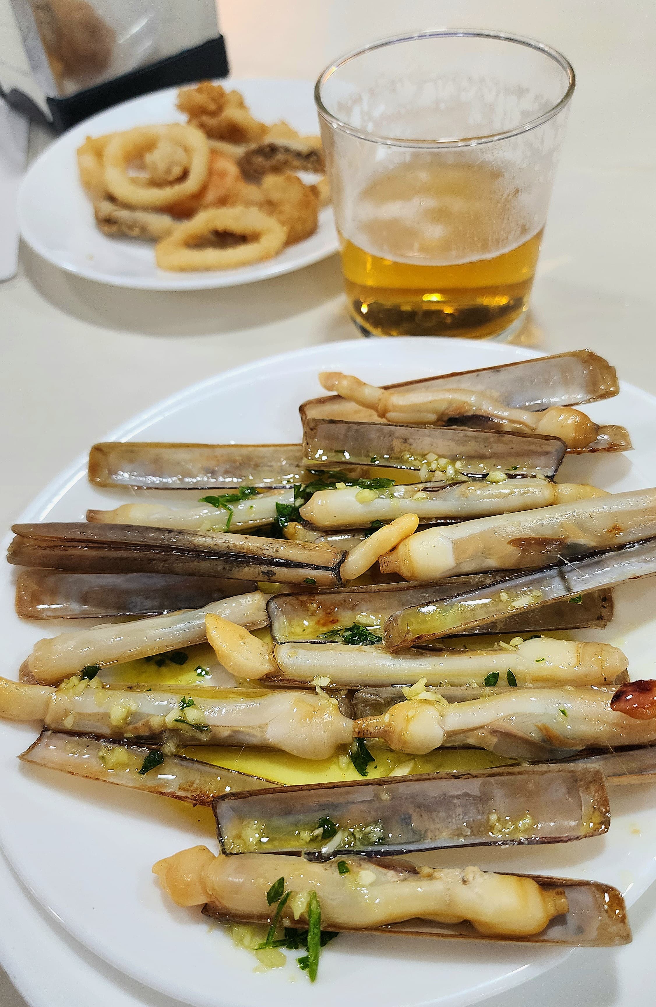 But I am still in search of another Sopa de Andaluzia (tripe soup) and Frijoles Babitas, those little baby beans that I liked so much in Cordoba. And Espetos, the grilled sardines on a skewer. And the bigger clams since I spent an hour eating the little ones last time. And I have started stocking up on canned seafood, too.