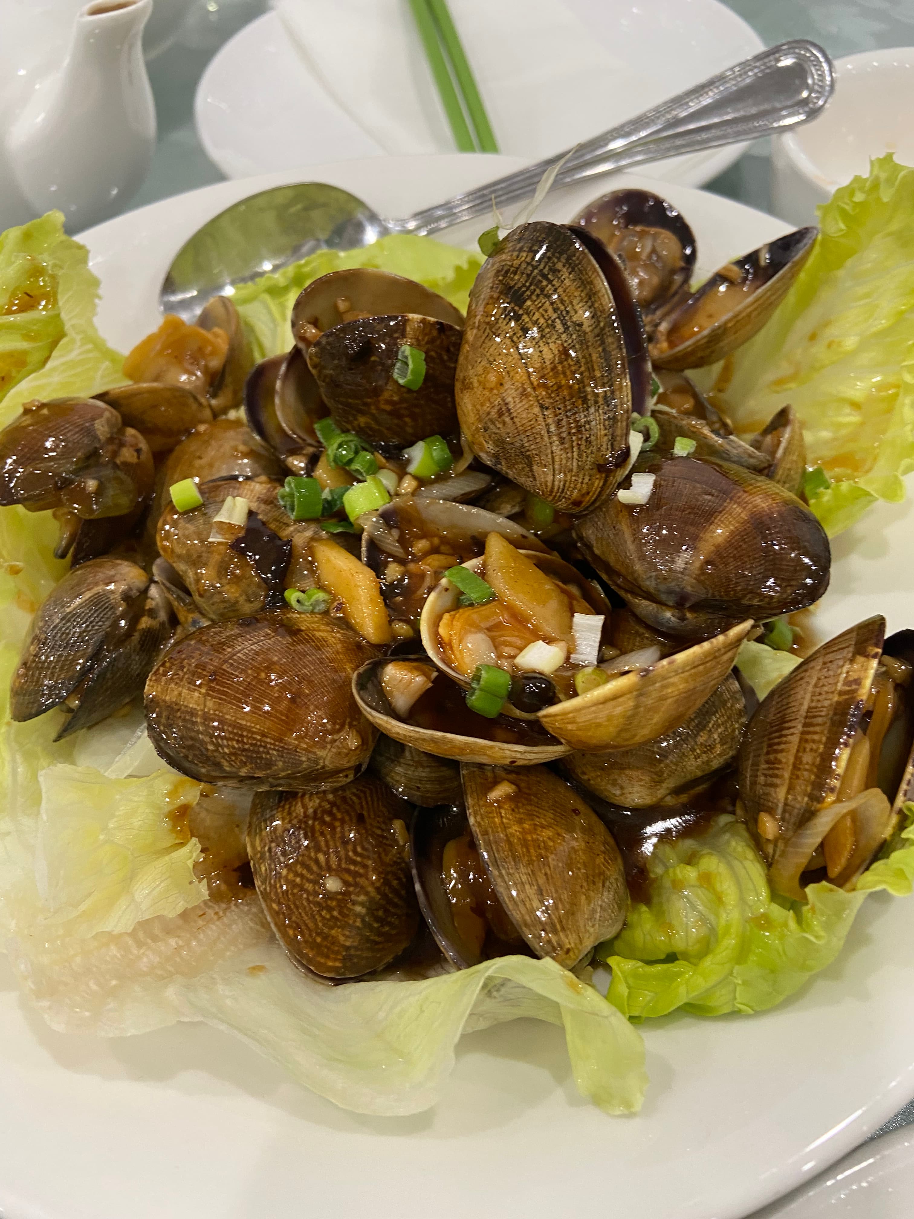 Stir fried BC Clams with black bean sauce ( A half-hearted effort with ho-hum results. Lacking in taste complexity and wok-hay )