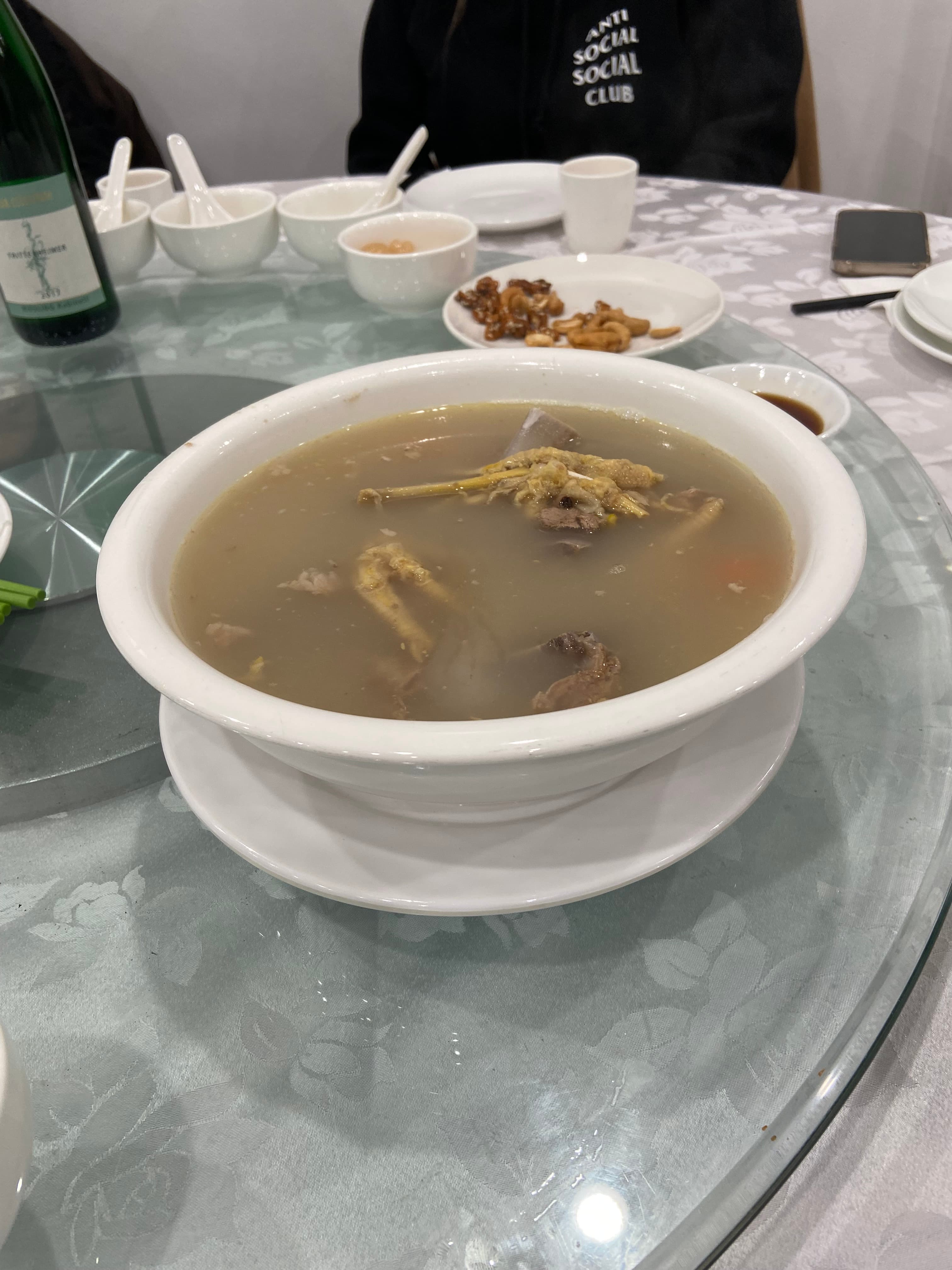 Complimentary soup-of-the-day ( Pork shank and bones, chicken feet and black eye beans )
