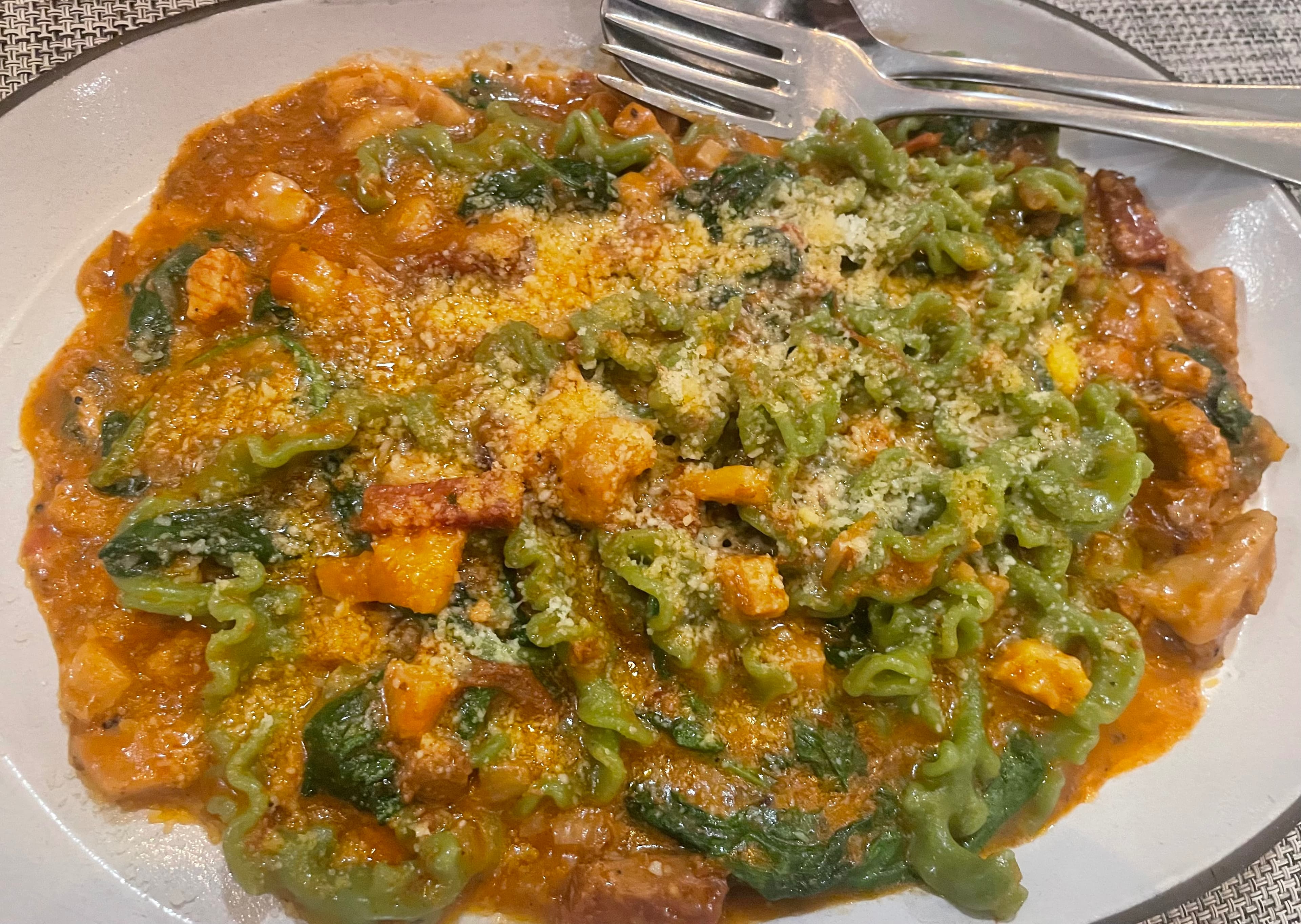 Malfedine, spinach pasta, “bolognese deluxe”, parmesan