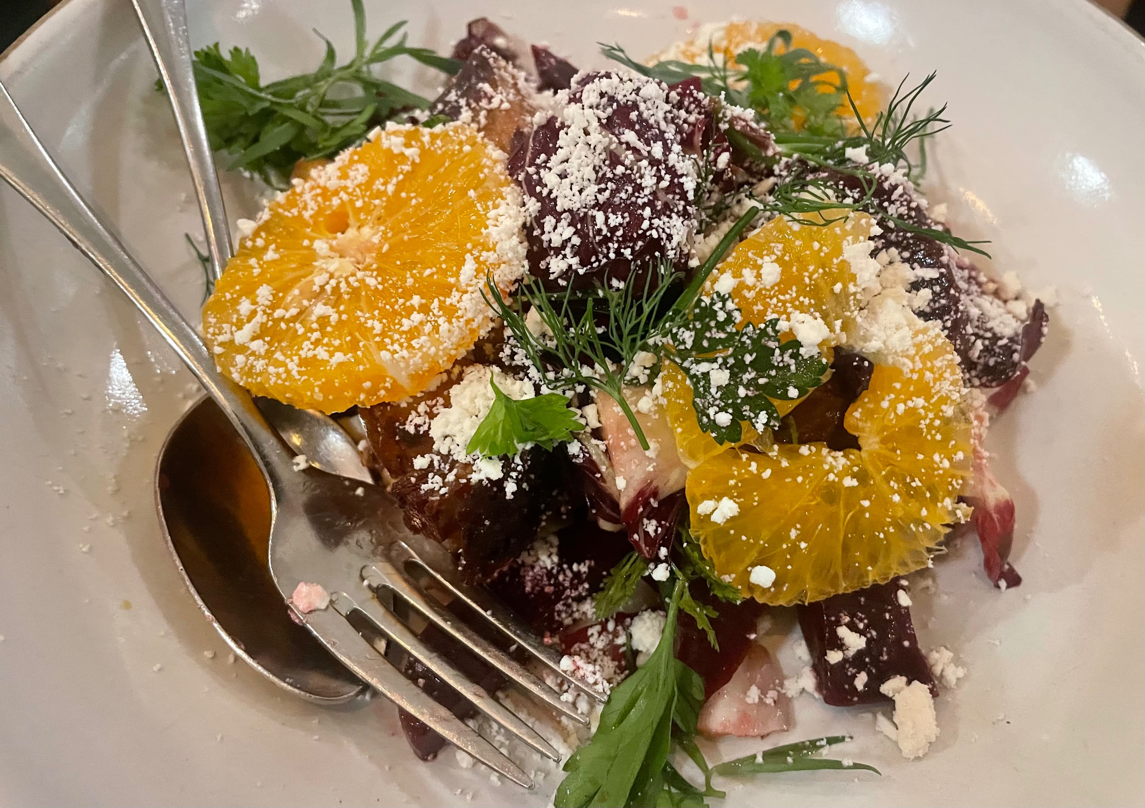 Radicchio & Red Beet, fried pork belly, orange & mulled red wine