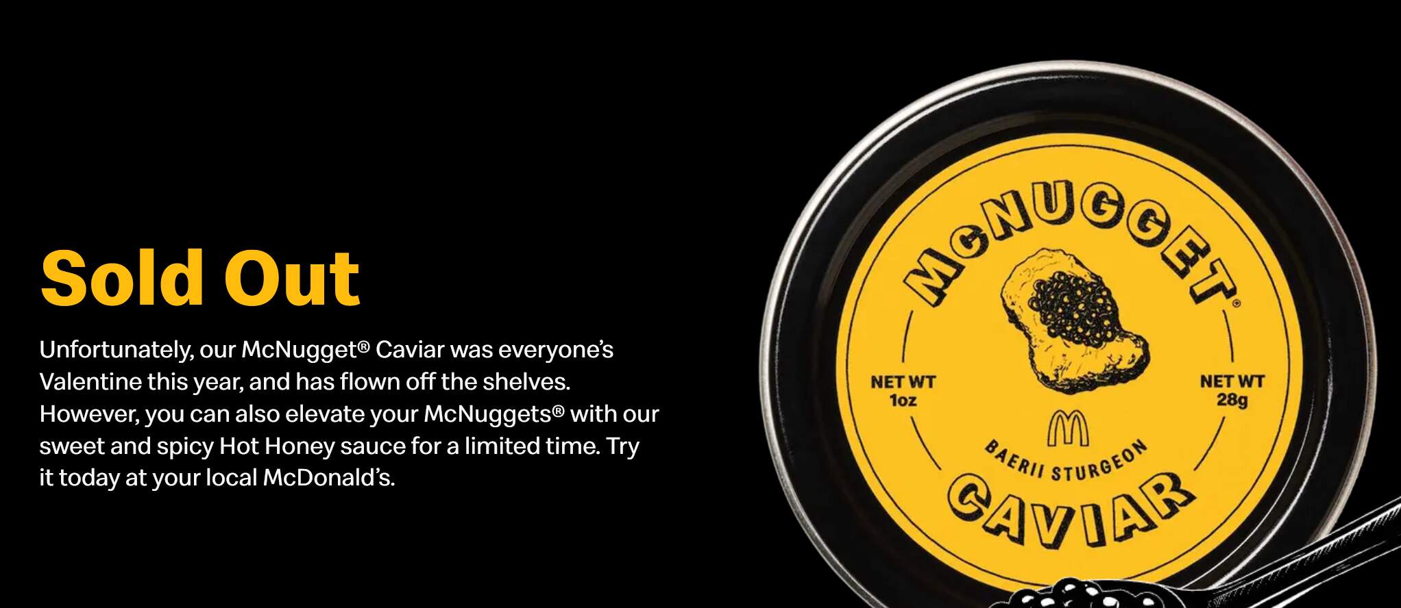 For Valentine’s Day there is now something call McCaviar, which is a combination of caviar and Chicken McNuggets. I guess it started as a Tic Toc trend. I have a feeling it’s not the best caviar.