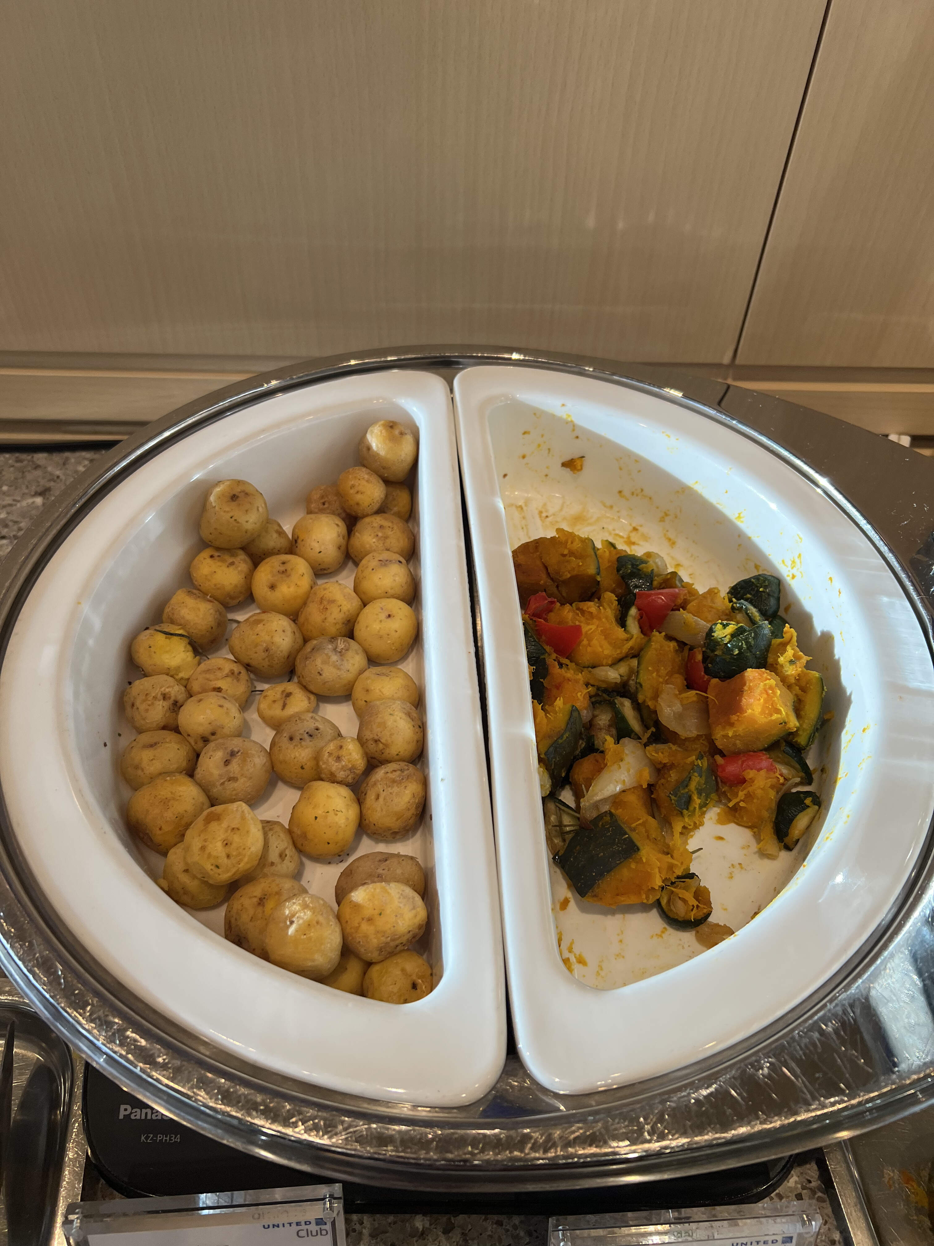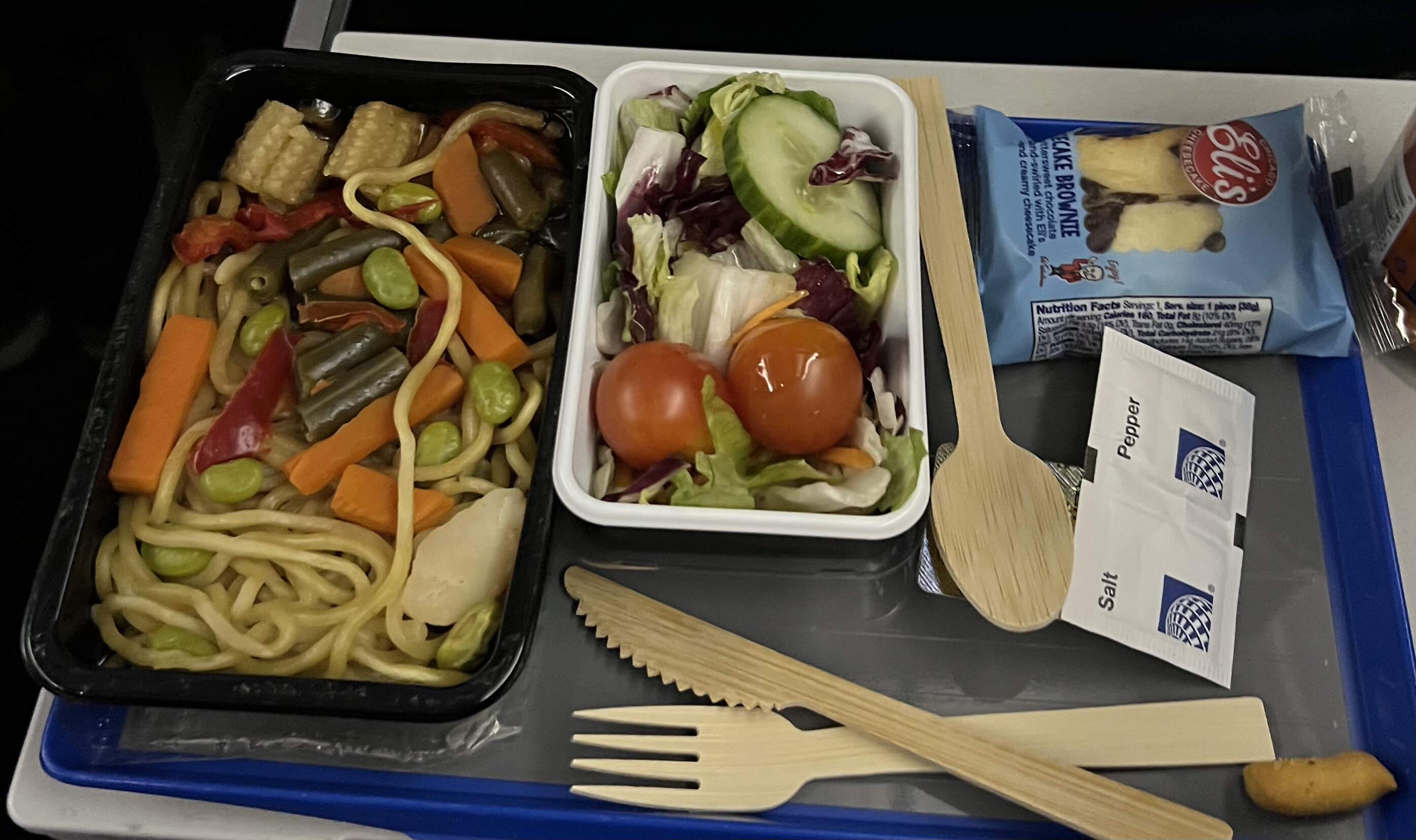 After my last coast-to-coast flight, which was delayed 3 hours over dinner time and there was virtually no food on board, I was prepared this time with a large bag of food from home.