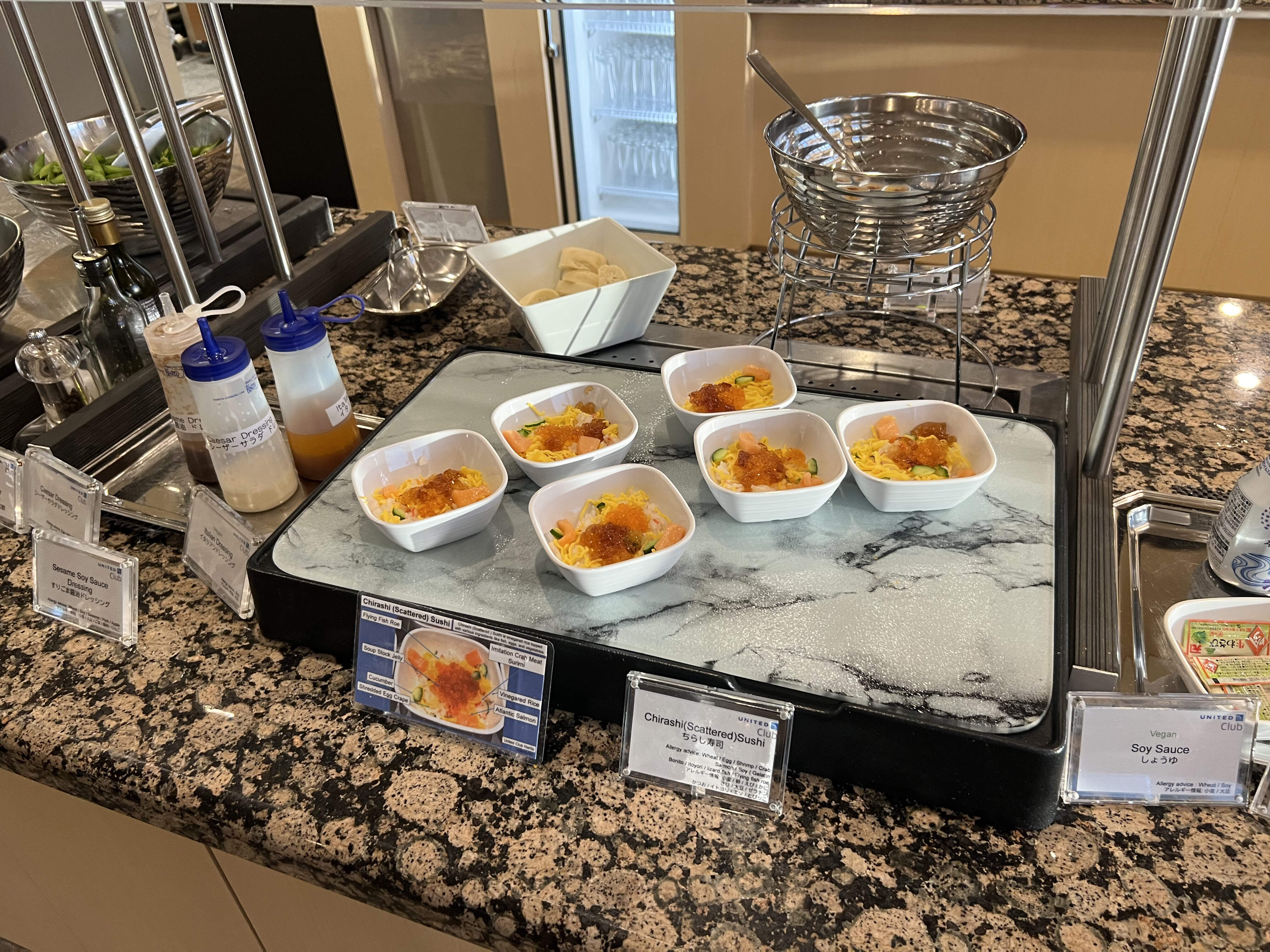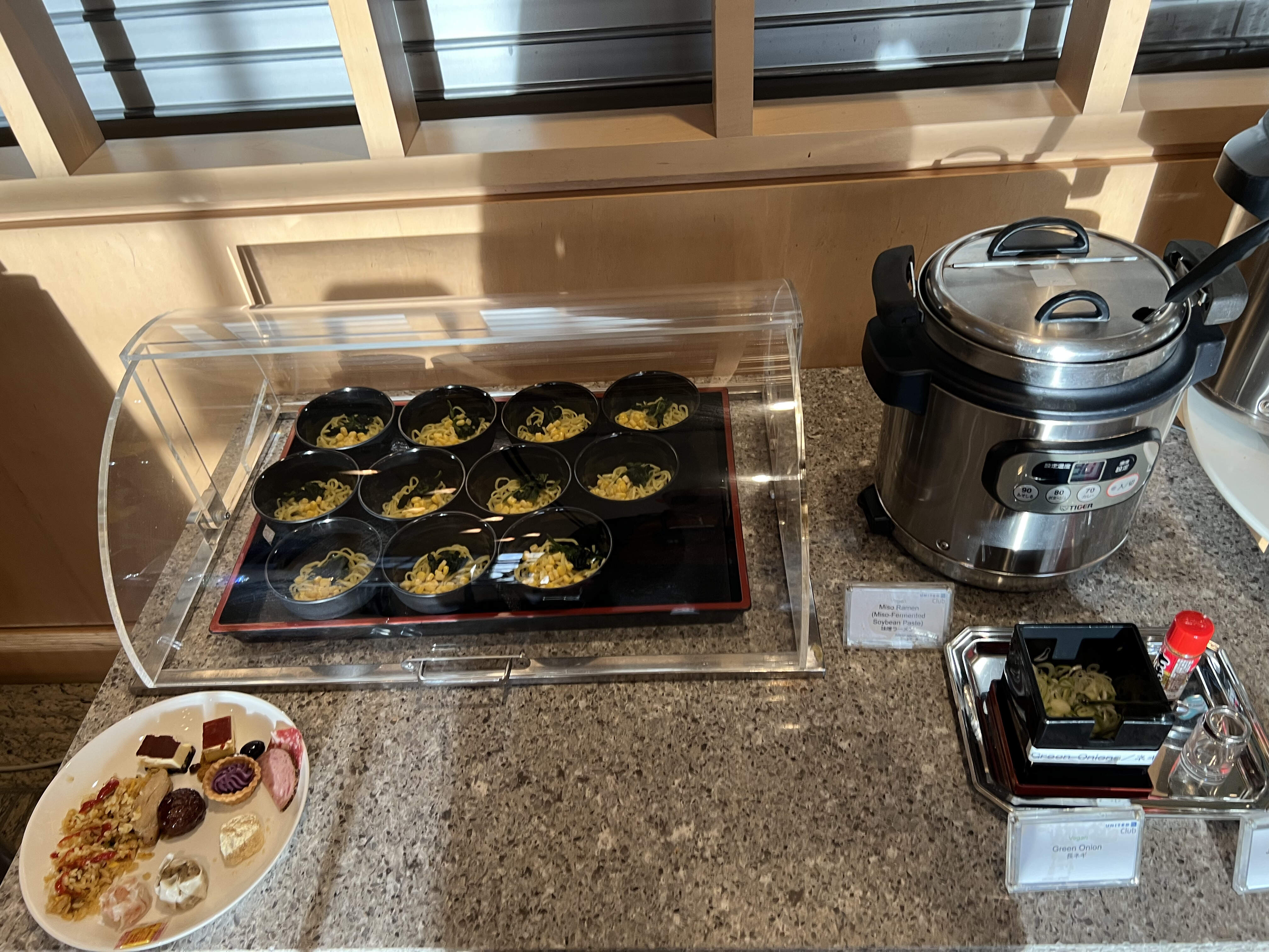 The ANA lounge at Narita tends to be more crowded but has made to order soba, udon and curry. Good sake and shochu selection. Food is better overall than the UA lounge. Try it next time if you have the chance. Your UA business class ticket will get you in.