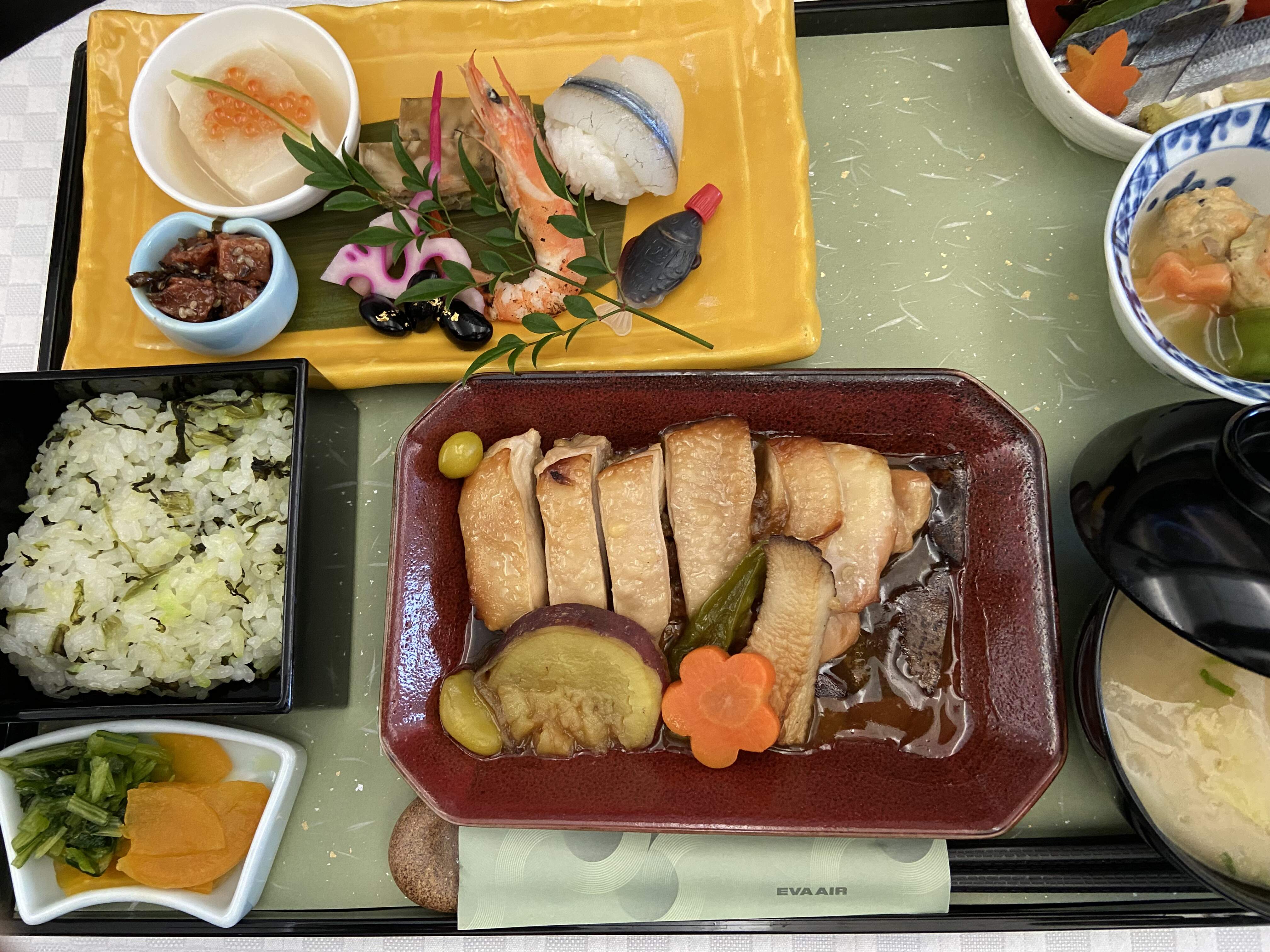 EVA AIR Osaka Kansai Airport Business Lounge and last Japanese Kaiseki meal on board plane ( Boeing