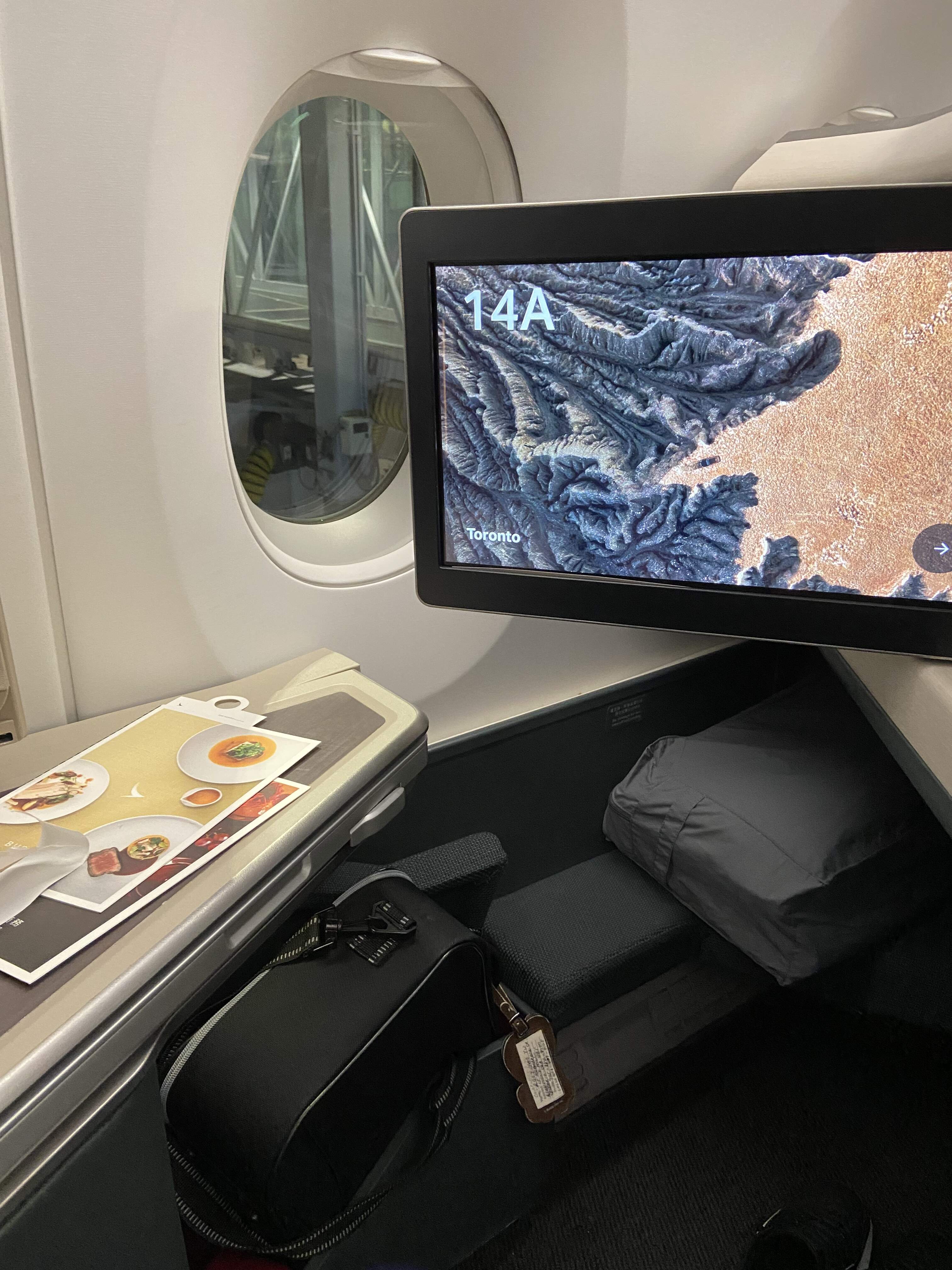 Enroute back to Toronto - Cathay Pacific HK airport lounge, seats and meals on board AirBus A350 - 1000, landing captured by night-vision cameras