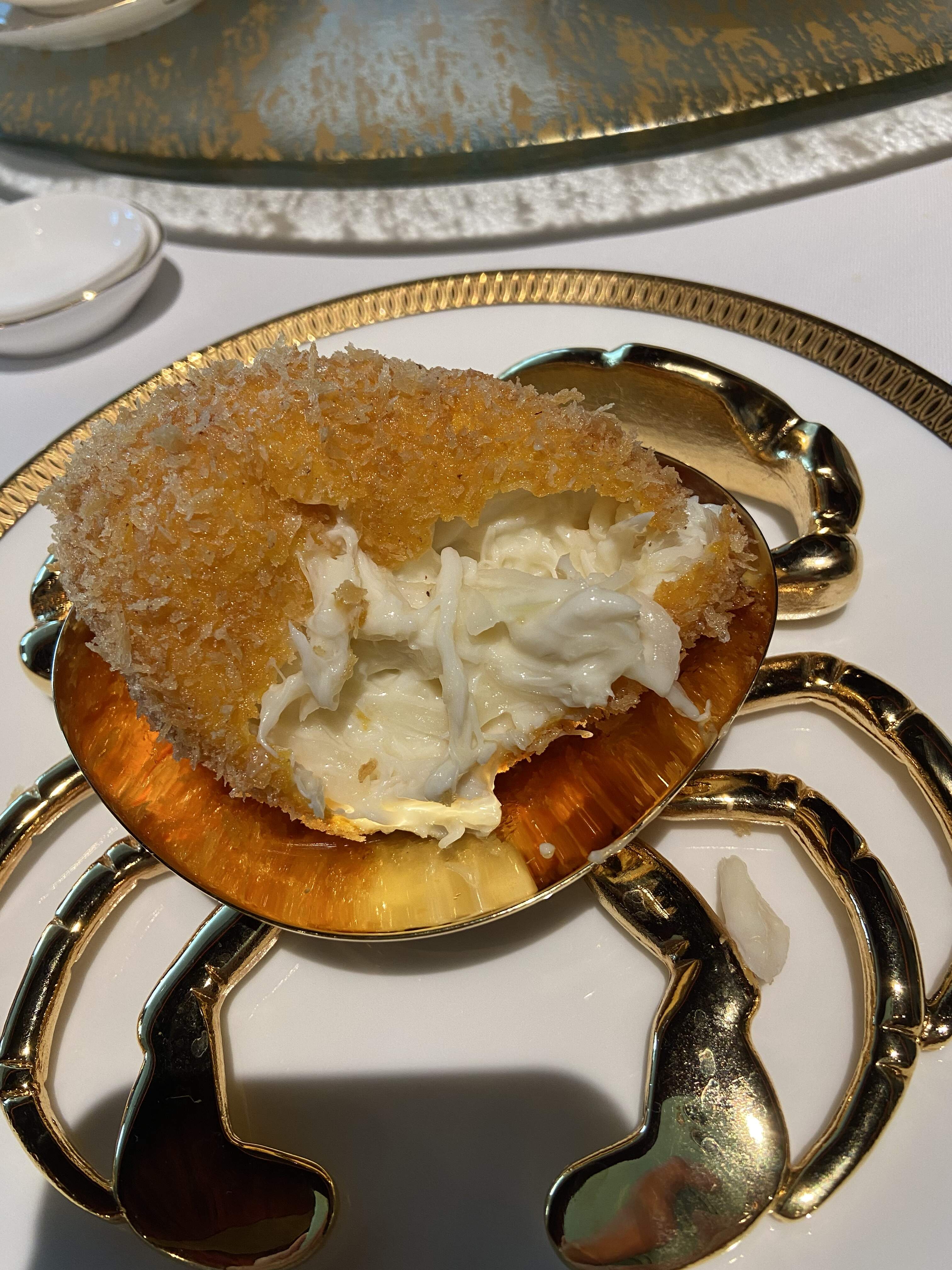 Part of birthday meal with Rosy at Hong Kong ‘ 3* Tan’g Court ‘……no fillers, just pure crab meat, augmented with a touch of caramelized onions and uber-licious cream sauce, topped with fine crunchy/crispy bread crumb crust.