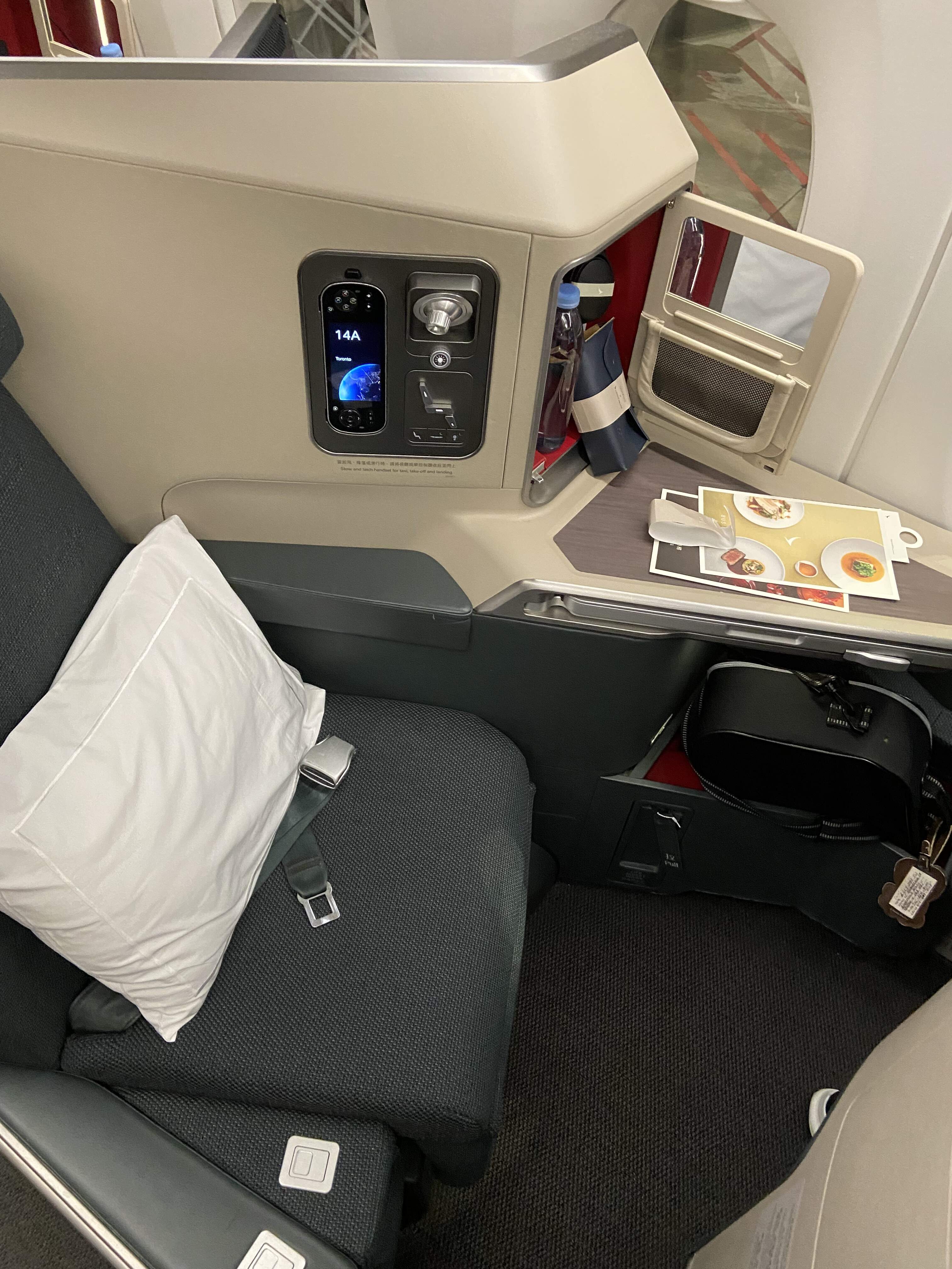My all time favorite flight ever was when EVA Air upgraded me to a business seat (2A) for a short flight. Loved the seat and the EVA staff! You can see forward down the runway from seat 2A because you are right at the front of the aircraft with the pilots sitting on the upper deck above you.