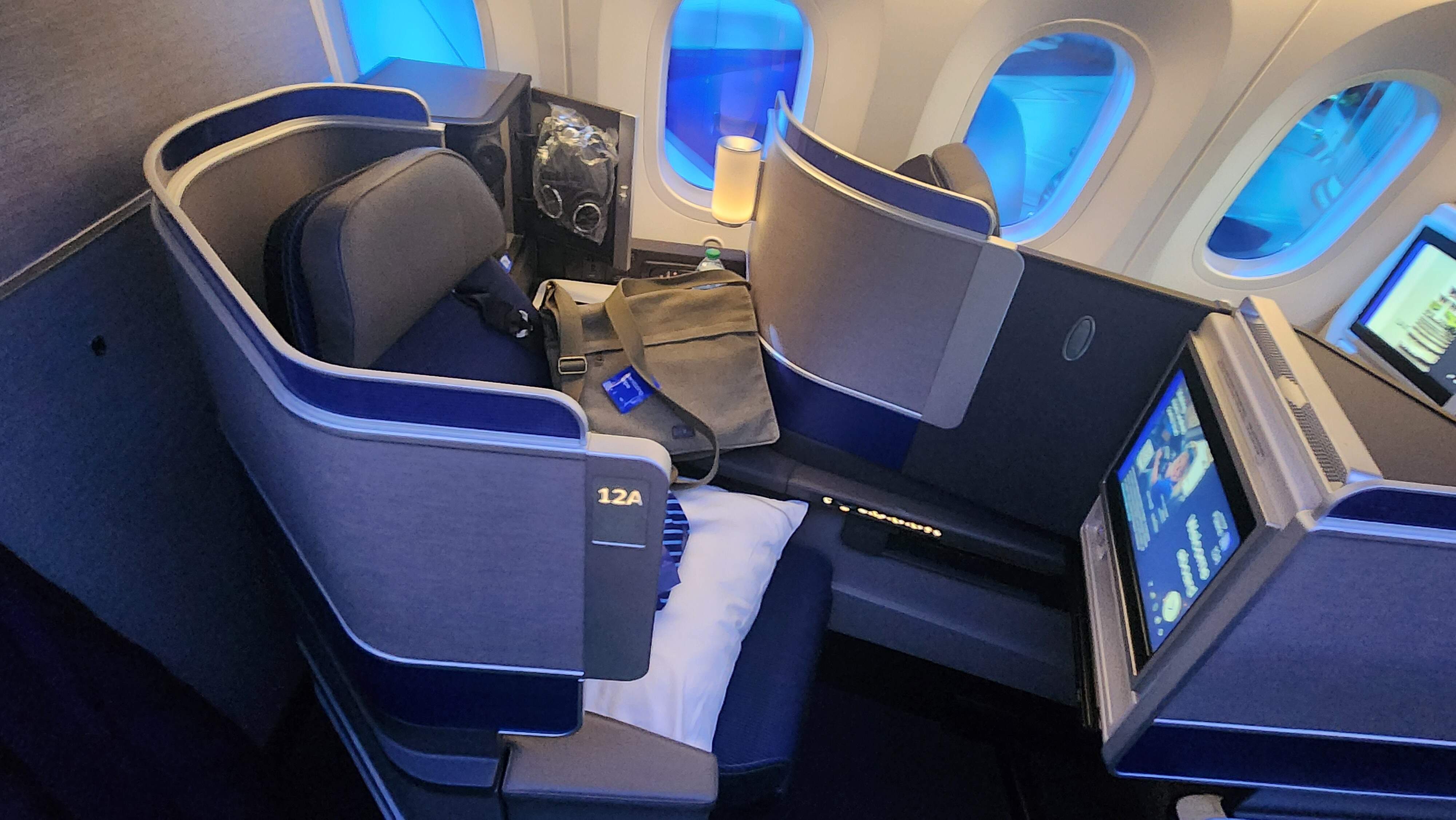 Here is a photo of United Polaris seats on a 787.