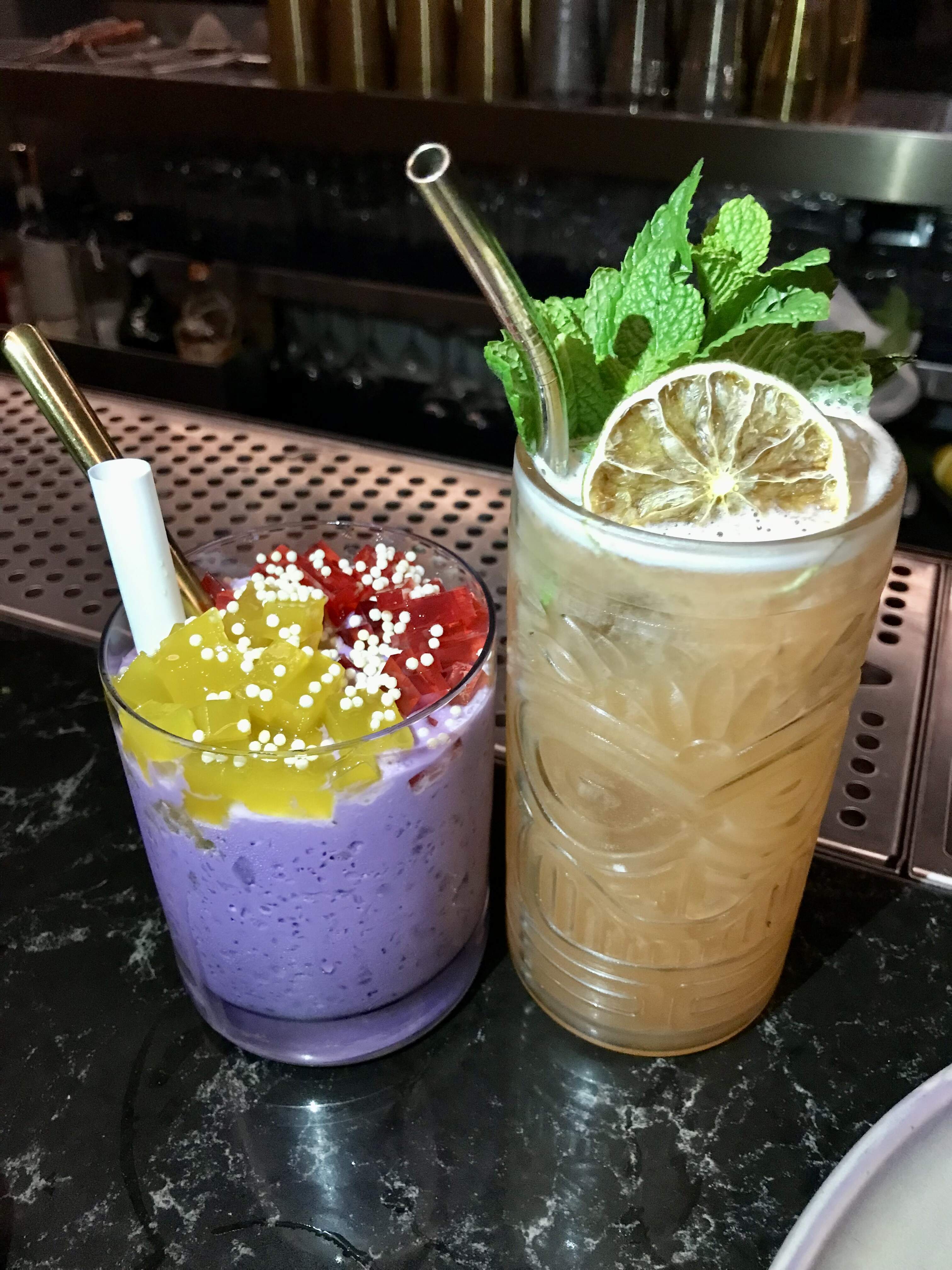 Siargao Shmoke: mezcal, Aperol, pineapple, lychee, lime, agave - smokey, nice lychee flavour, and a little bitter.