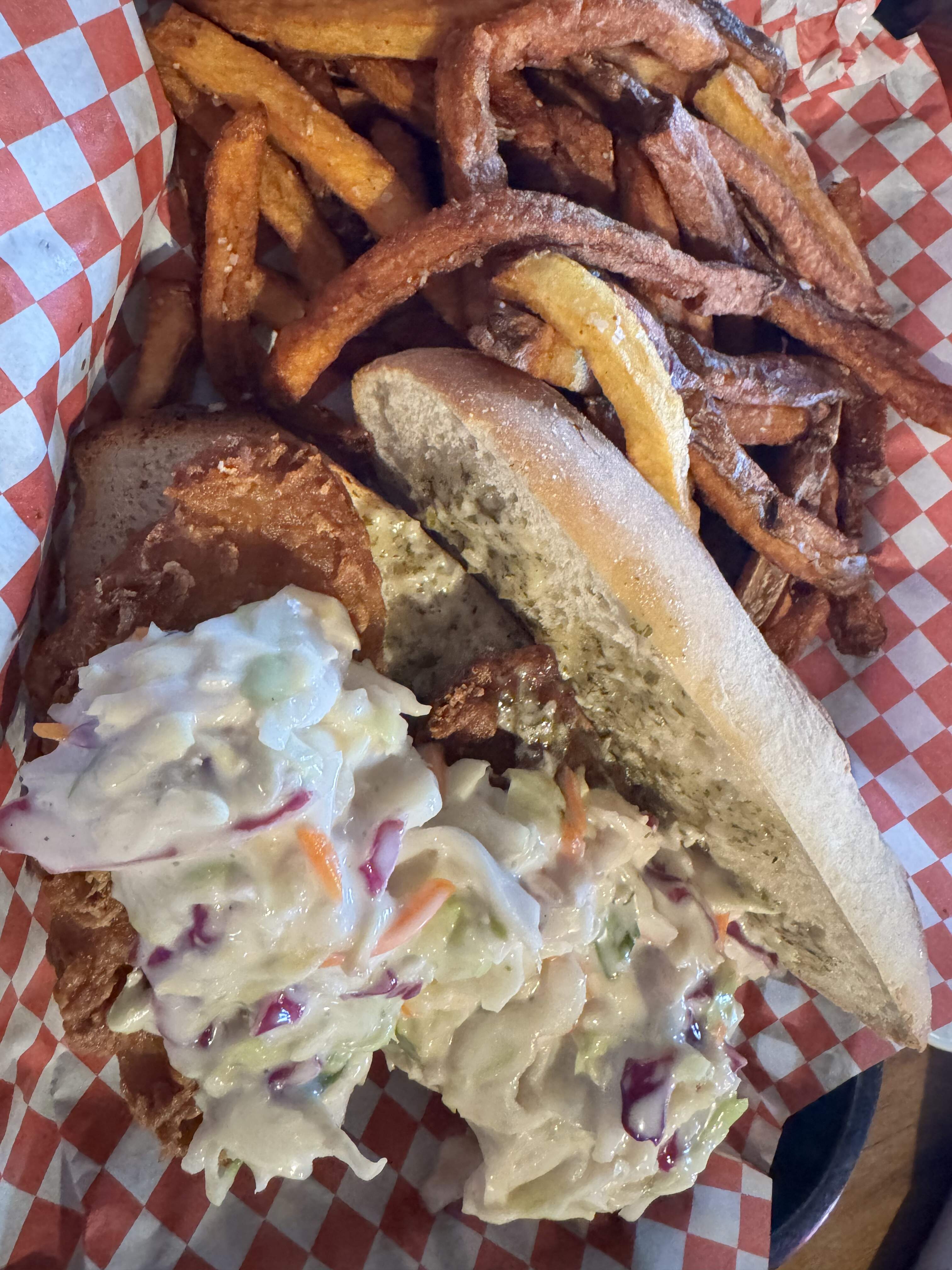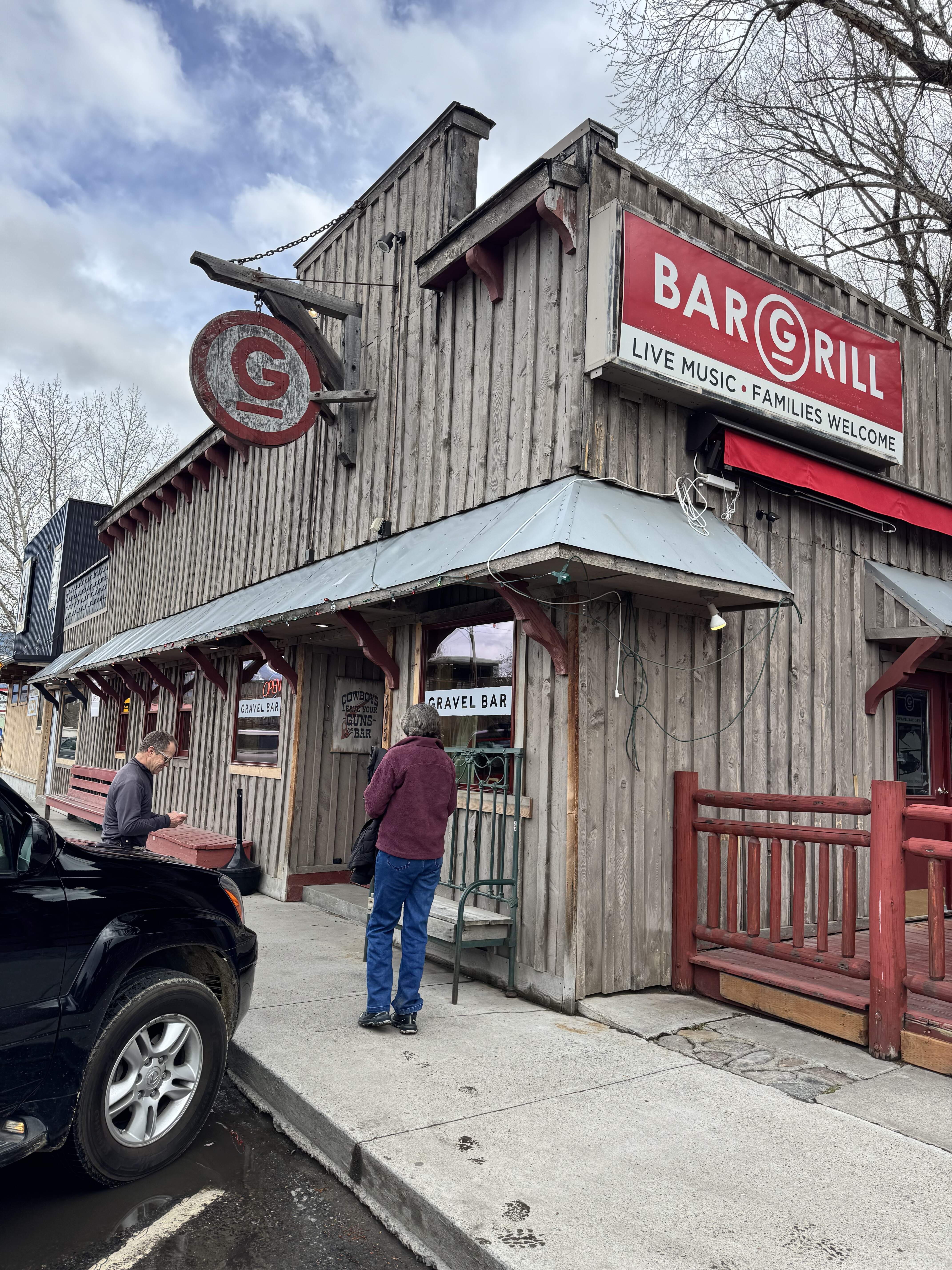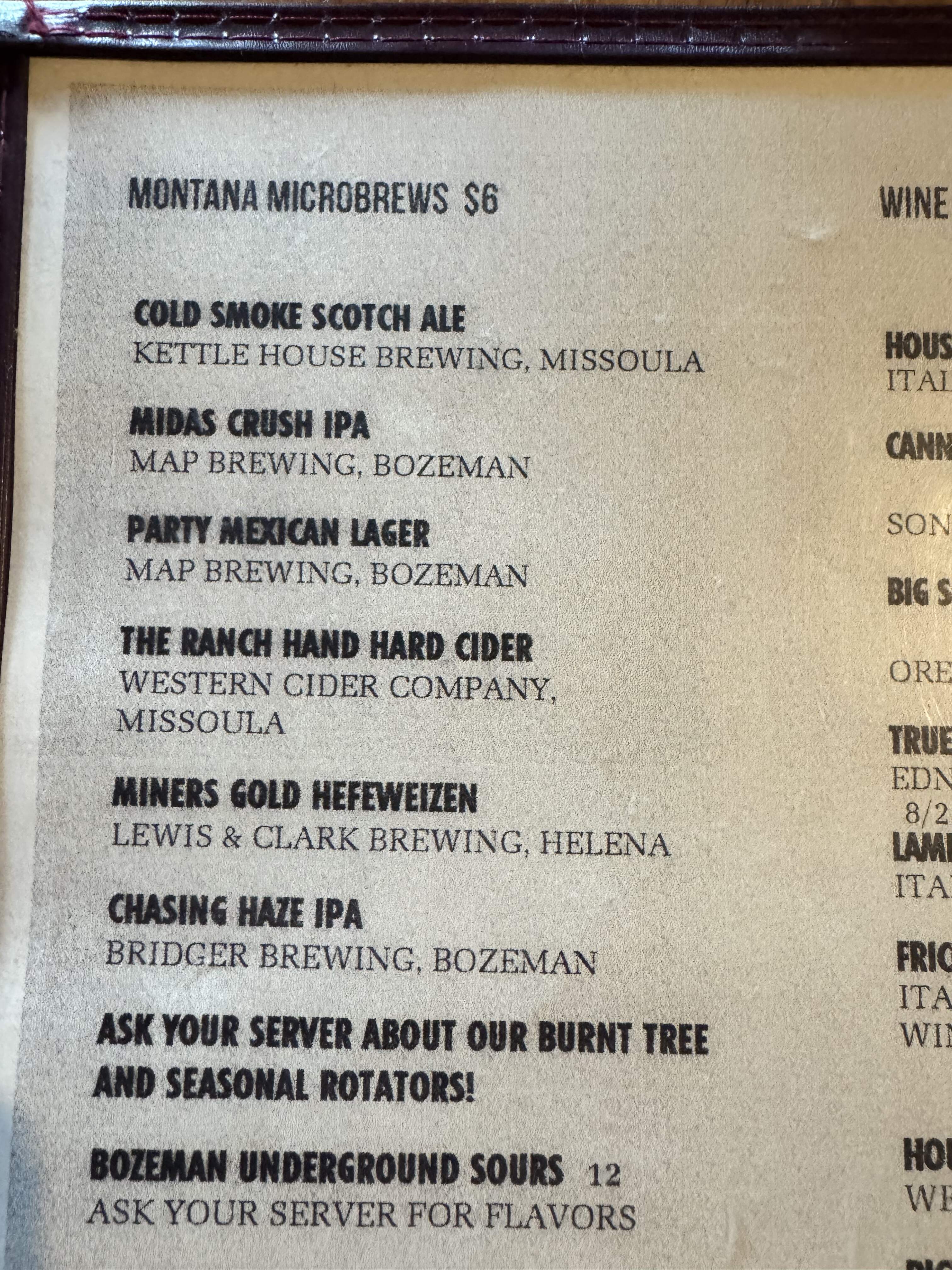 Gravel Bar, Ennis MT for post hike burgers and brews. I had the fish sandwich special with a Kettle House cold smoke scotch ale draft. I drank a lot of porters and dark beers because it seemed to fit the weather, and found the various Montana microbrews uniformly good.