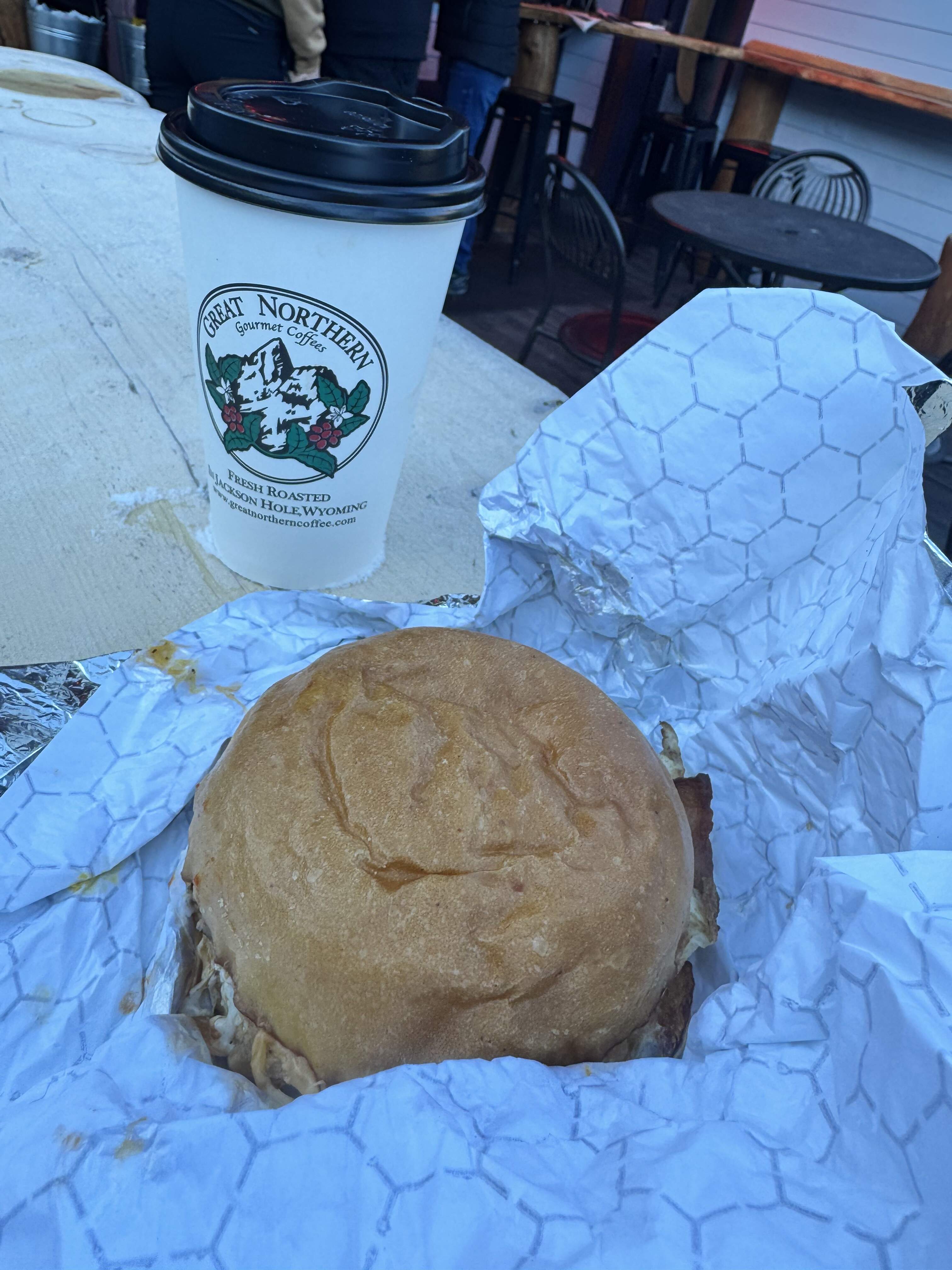 D.O.G. in Jackson for bacon egg cheese sandwiches before hiking in Grand Tetons National Park. They use a fancy brioche bun.