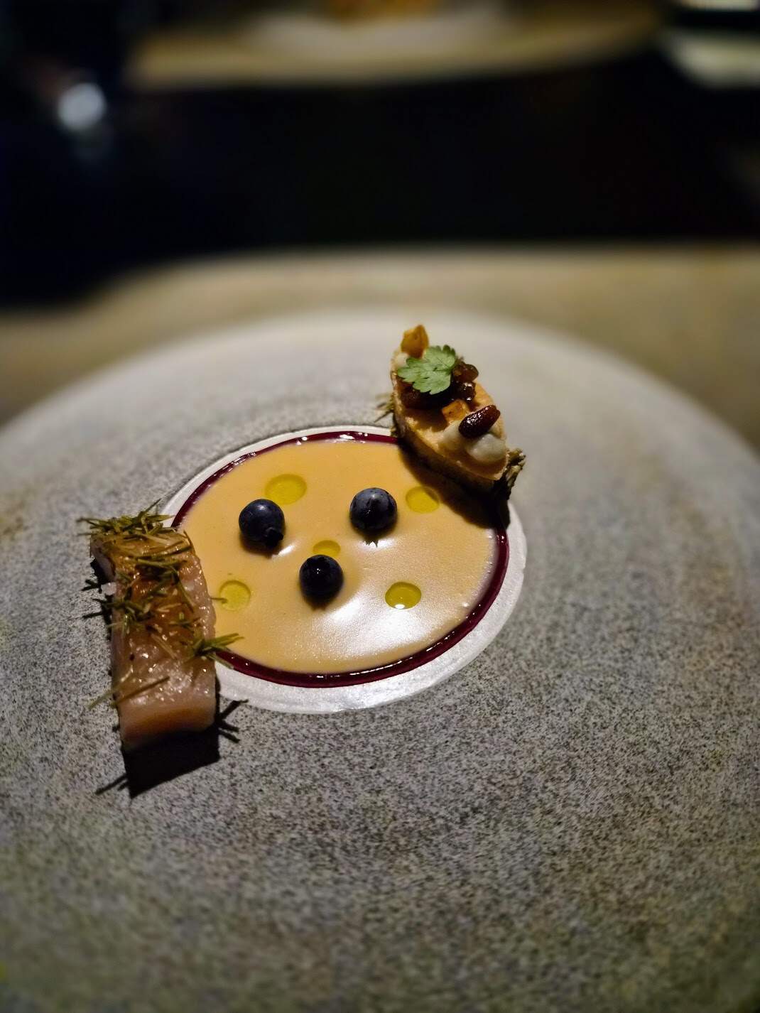 did enjoy the scallops and were extremely happy to have more, so we dug in with gusto, then shocked surprise and pleasure as we realized this was something completely different and the only picture of the pre-dessert is: