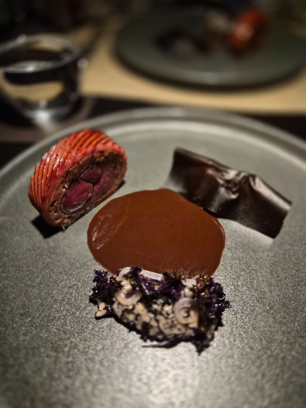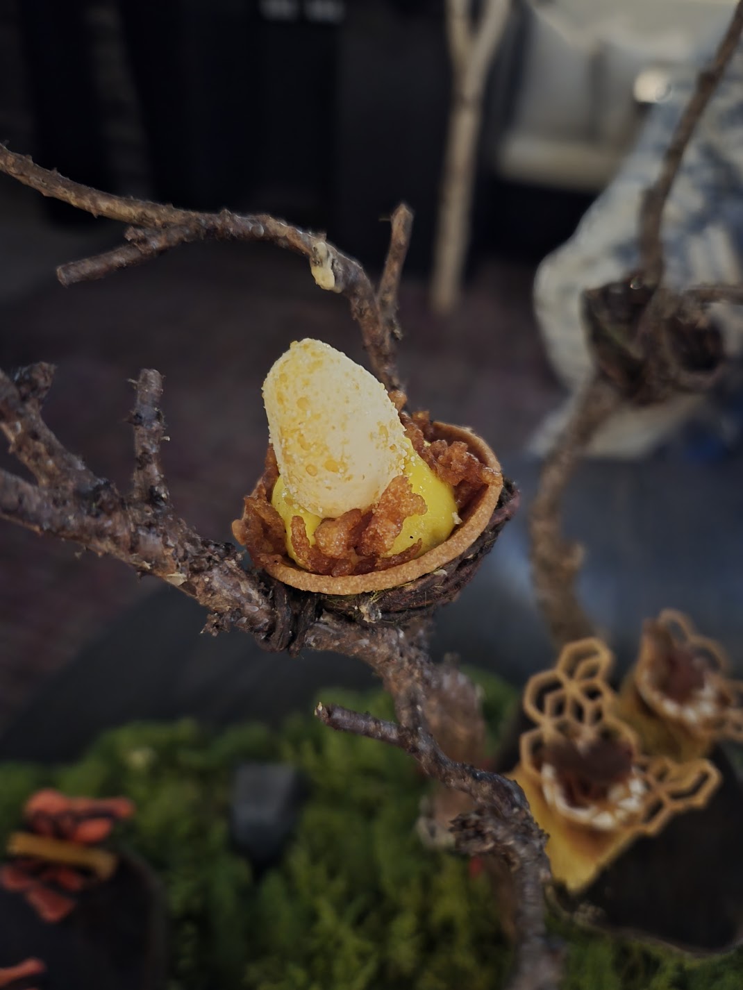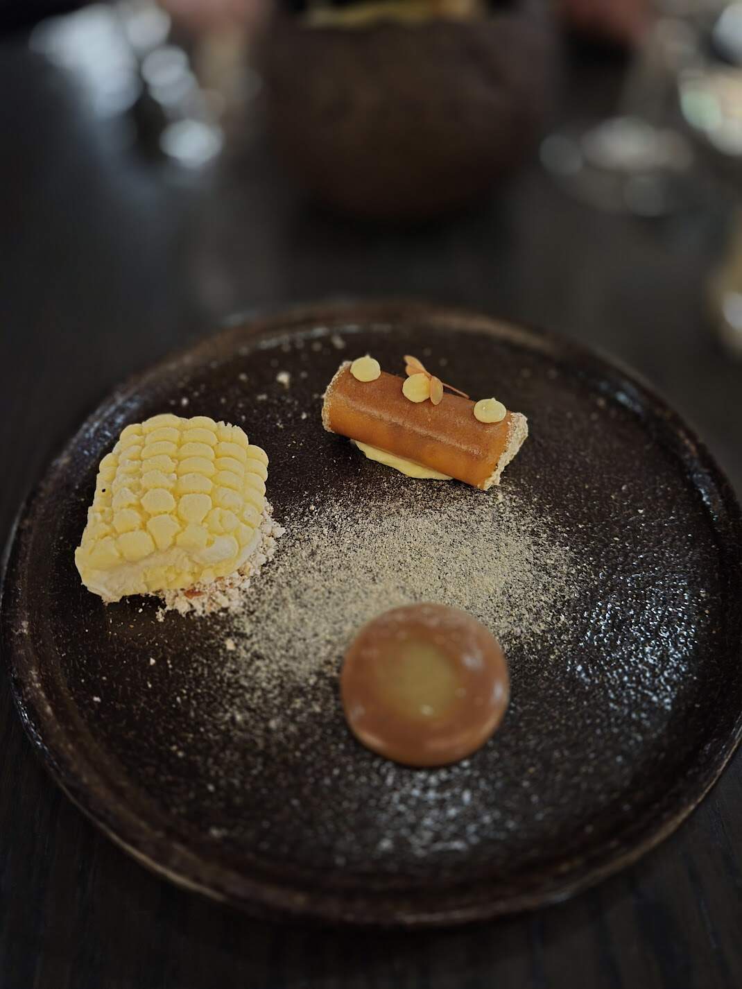 First dessert featured corn. The corn from the cob is actually ice cream, but I don’t recall what the other dessert pieces were, exactly, though all had the flavour of sweet corn. There was also a lovely cornbread.