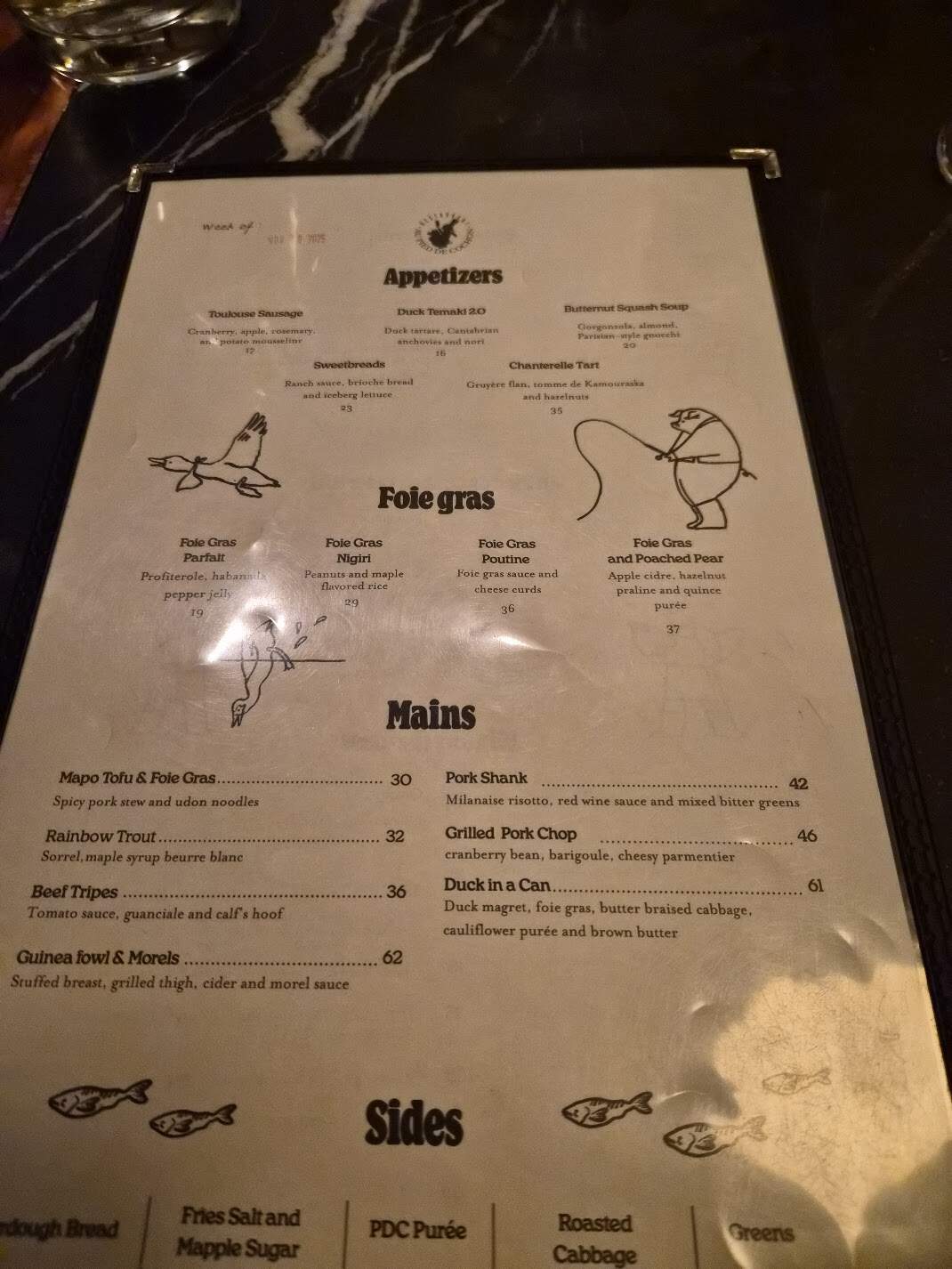 Dinner! Au Pied de Cochon: Yep, this is the temple of foie gras and gastronomic excess. Excellent food. The only just okay dish was their signature duck in a can. They make the cans in house as a vessel to cook the duck in. This isn’t a real conserve, so it’s not something you can buy and have in your cupboard. What’s inside is cooked to rare but the flavours were muddied and it tasted mostly of cabbage. Fun gimmick, but far outshone by the other dishes. I wouldn’t order it again.
