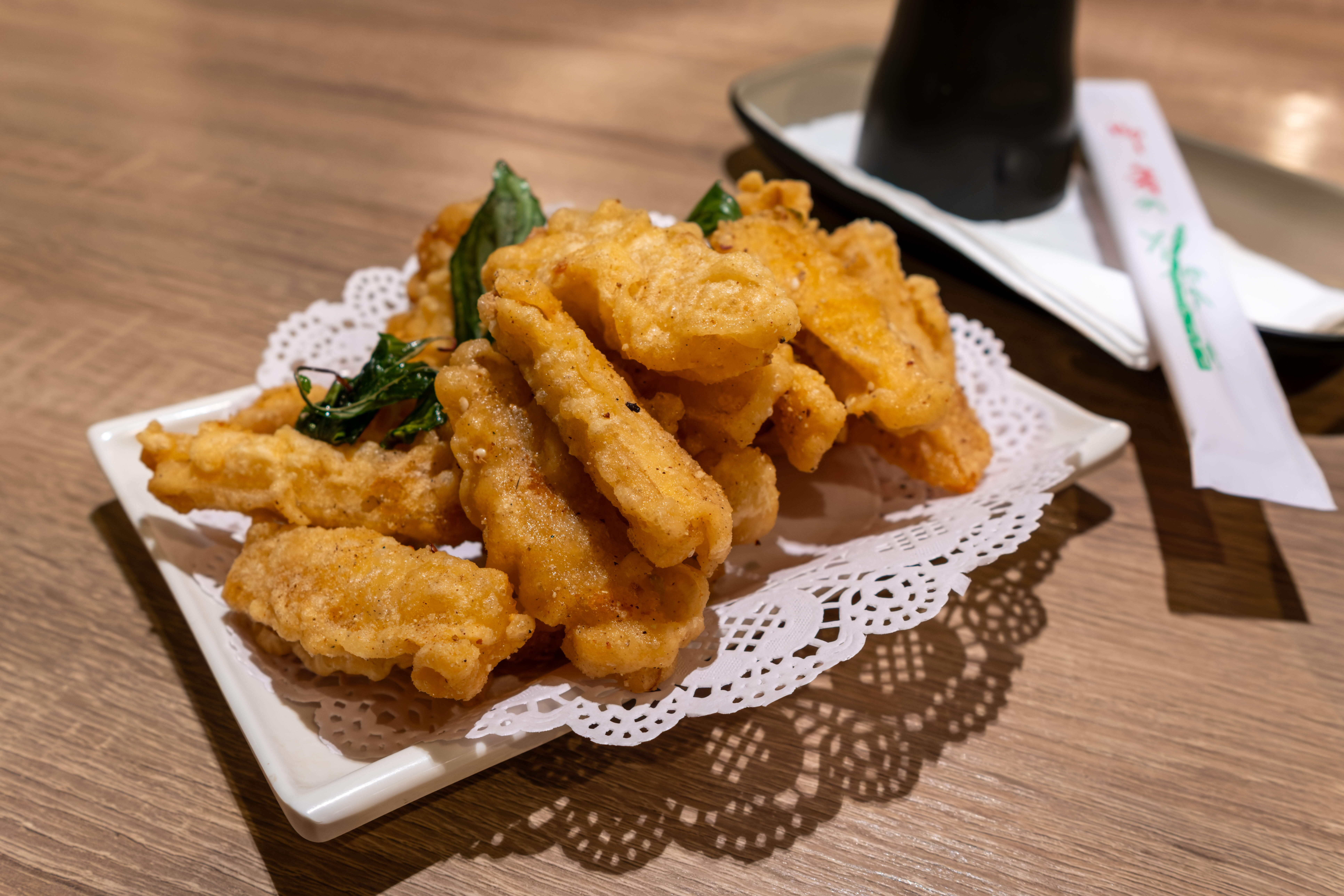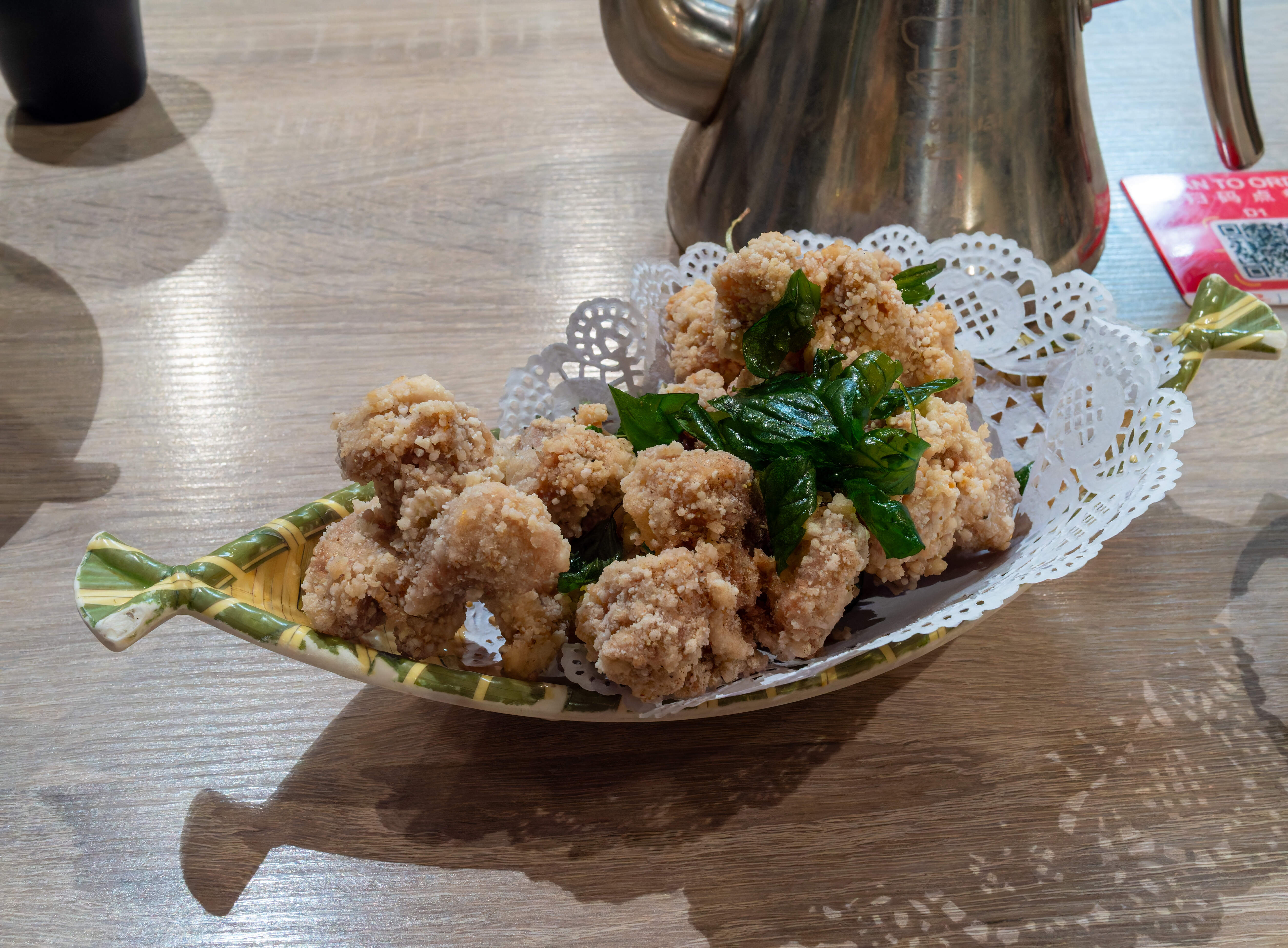 On my second visit last week I had a Dry Pot ($26.95) which also had a choice of toppings and also a sauce. I chose the Szechuan spicy sauce (there are also choices of garlic, hot & spicy, and kungpao), and beef tongue, crispy salted chicken, king trumpet mushrooms, green bok choy, fried tofu, and wide bean noodles as toppings. This is a very large portion and probably could be shared with an appetizer between two people. It was very good. There were a lot of dried chilis within the dry pot, and the Szechuan spicy sauce was spicy, salty, and hot. The crispy salted chicken wasn’t super crispy but the meat was quite tender, as was the tongue and the meaty trumpet mushrooms. The wide bean noodles were nice and chewy.