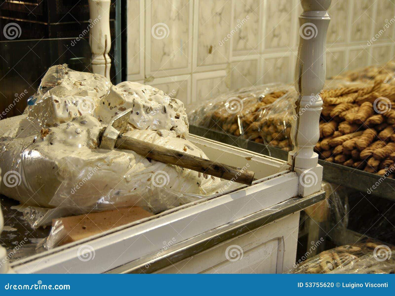 I found nougat sold exactly the same way in Tunisia a few decades later, and brought back some for him, which was quite a blast from the past!