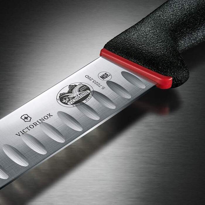 The slicer I have is similar to this victorinox. Notice the dimples don’t go all the way to the edge, granted its a mere few milimetres.