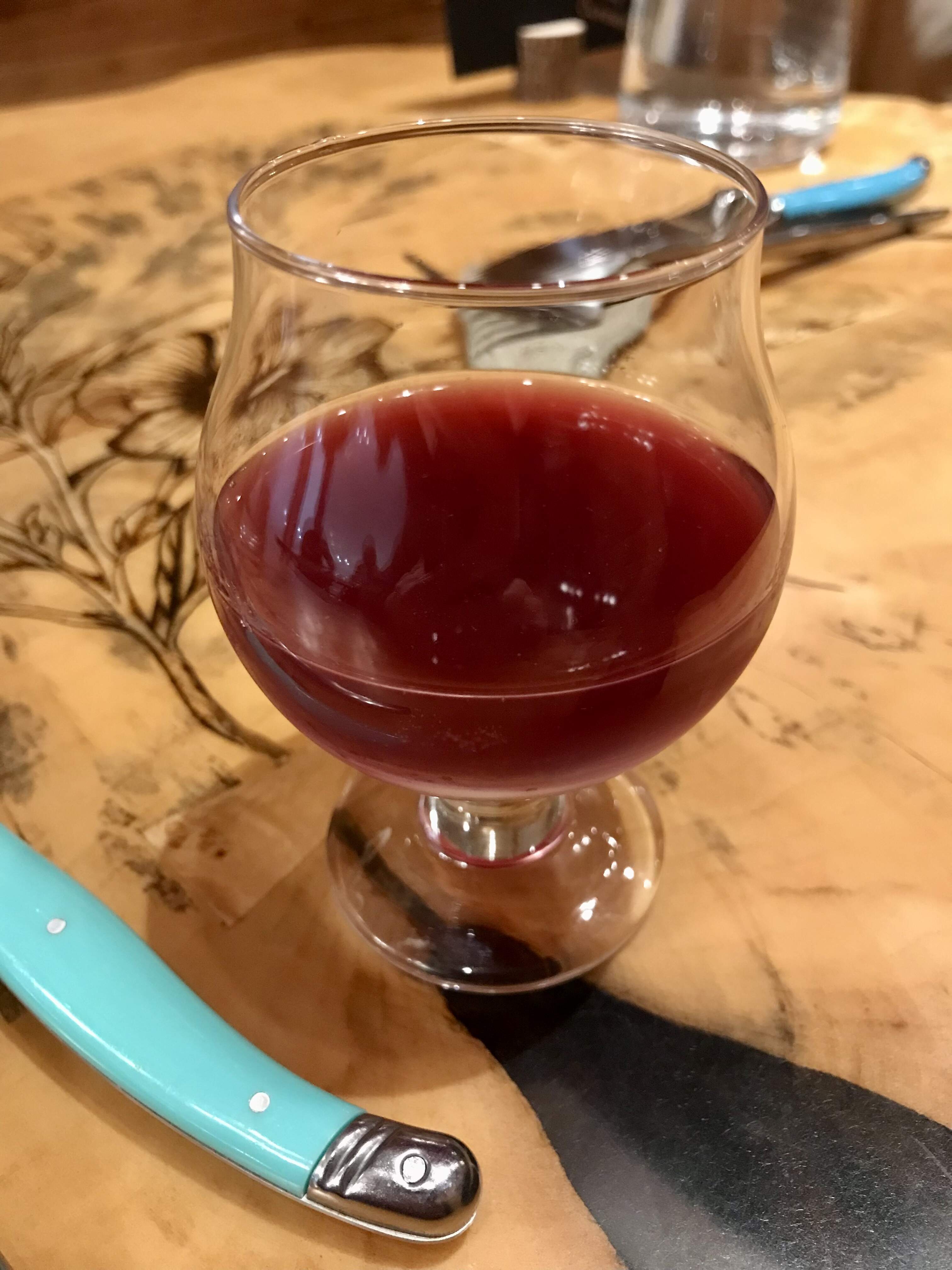Our final pairing was pear juice, apple syrup, apple cider vinegar – pleasant on its own, but perhaps a bit too much acid to go with the desserts.