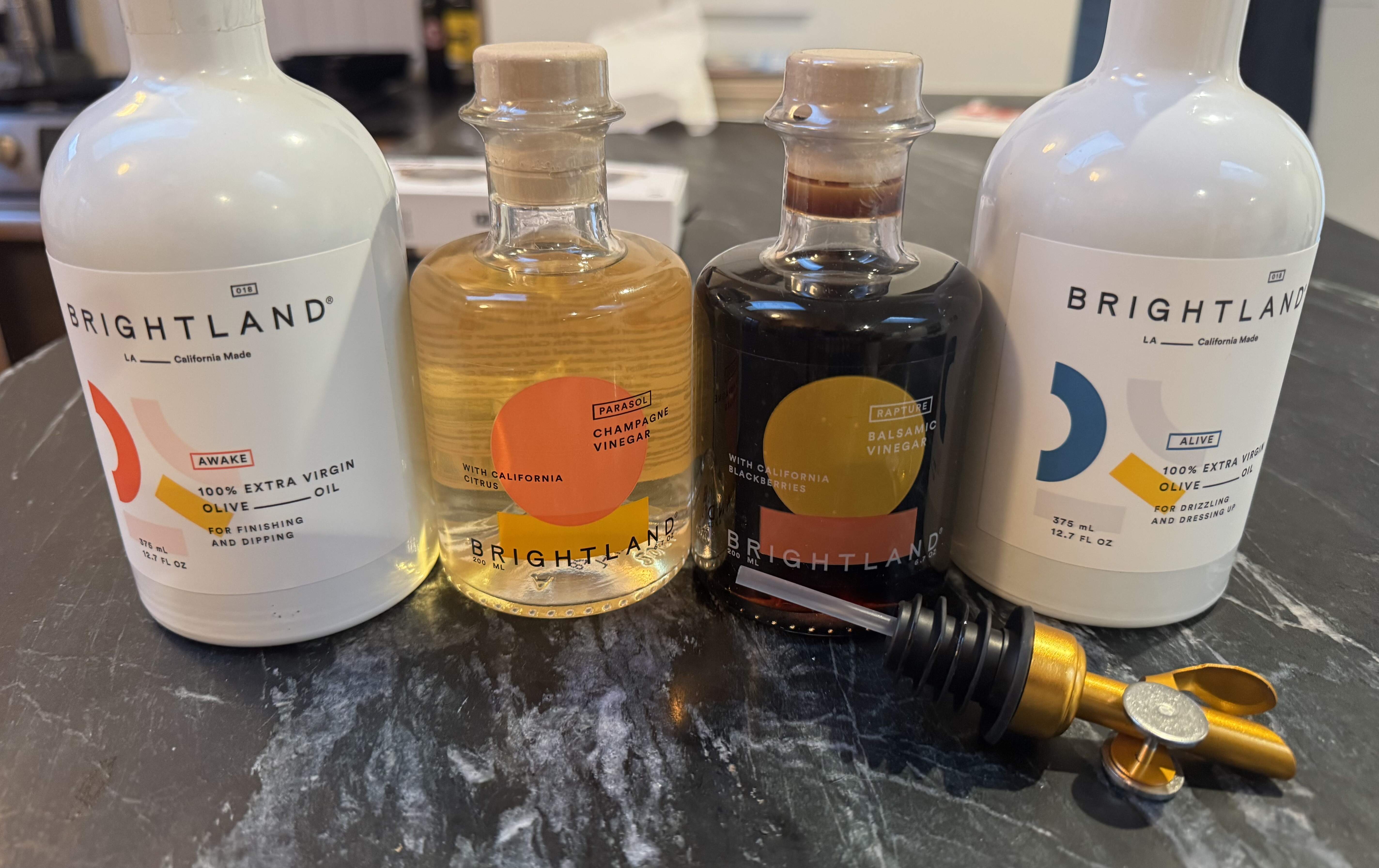 I got a fancy olive oil/vinegar set. I’m most excited it came with two quality pour spouts so I can just refill with my pedestrian olive oil when they run out.