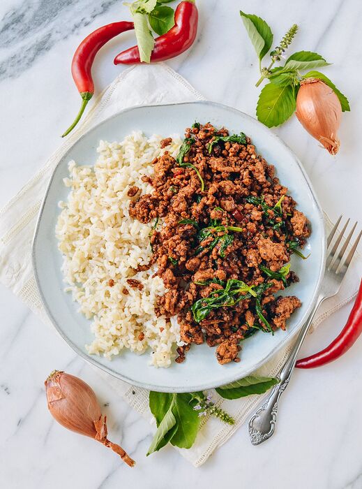 With holy basil; same as the chicken Pad Krapow recipe up thread.