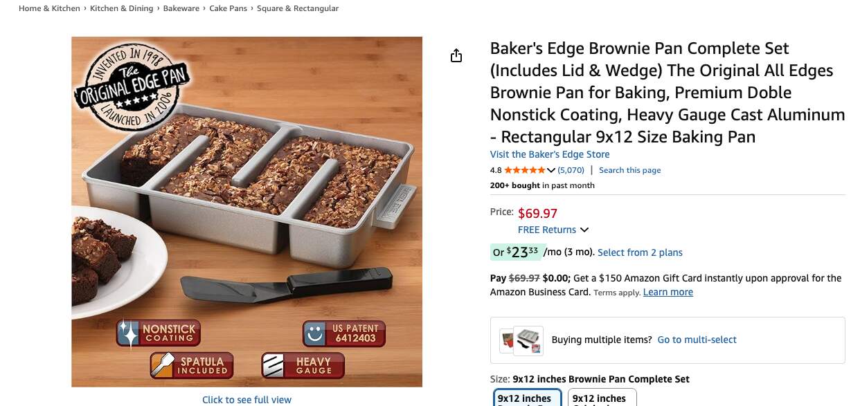 8x8 brownie and 12x17 sheet