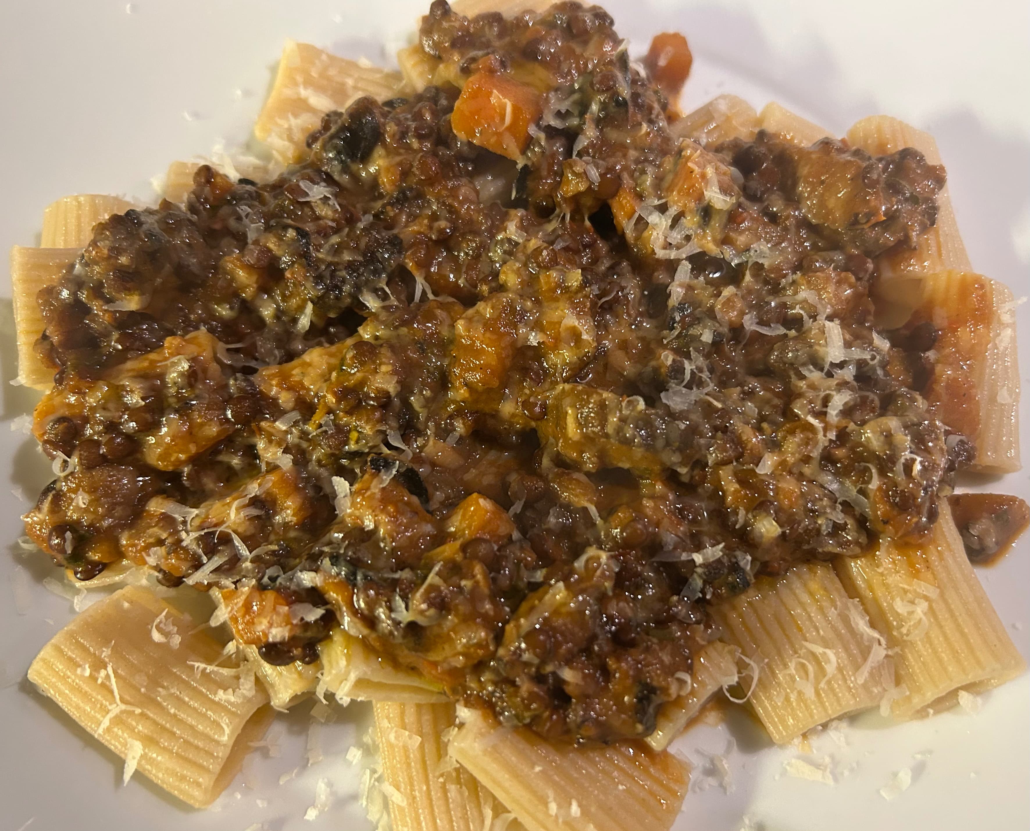 I made this Mushroom and Lentil ragu from October’s Food and Wine a couple weeks ago. They suggest it over polenta, I made it over rigatoni, but it can definitely be a spaghetti sauce! Being near mushroom country I used a mix of cremini, chestnut, royal trumpet and Maitaki mushrooms. https://www.foodandwine.com/mushroom-and-lentil-ragu-11791843
