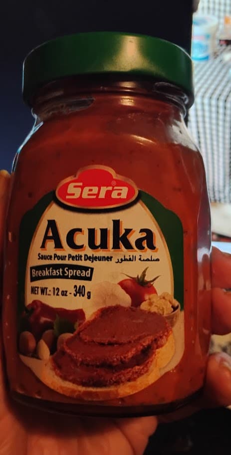 Acuka also makes itself further east as ajuka / ajika/ adjika (with some bitterness from fenugreek as you get to Georgia & nearby)