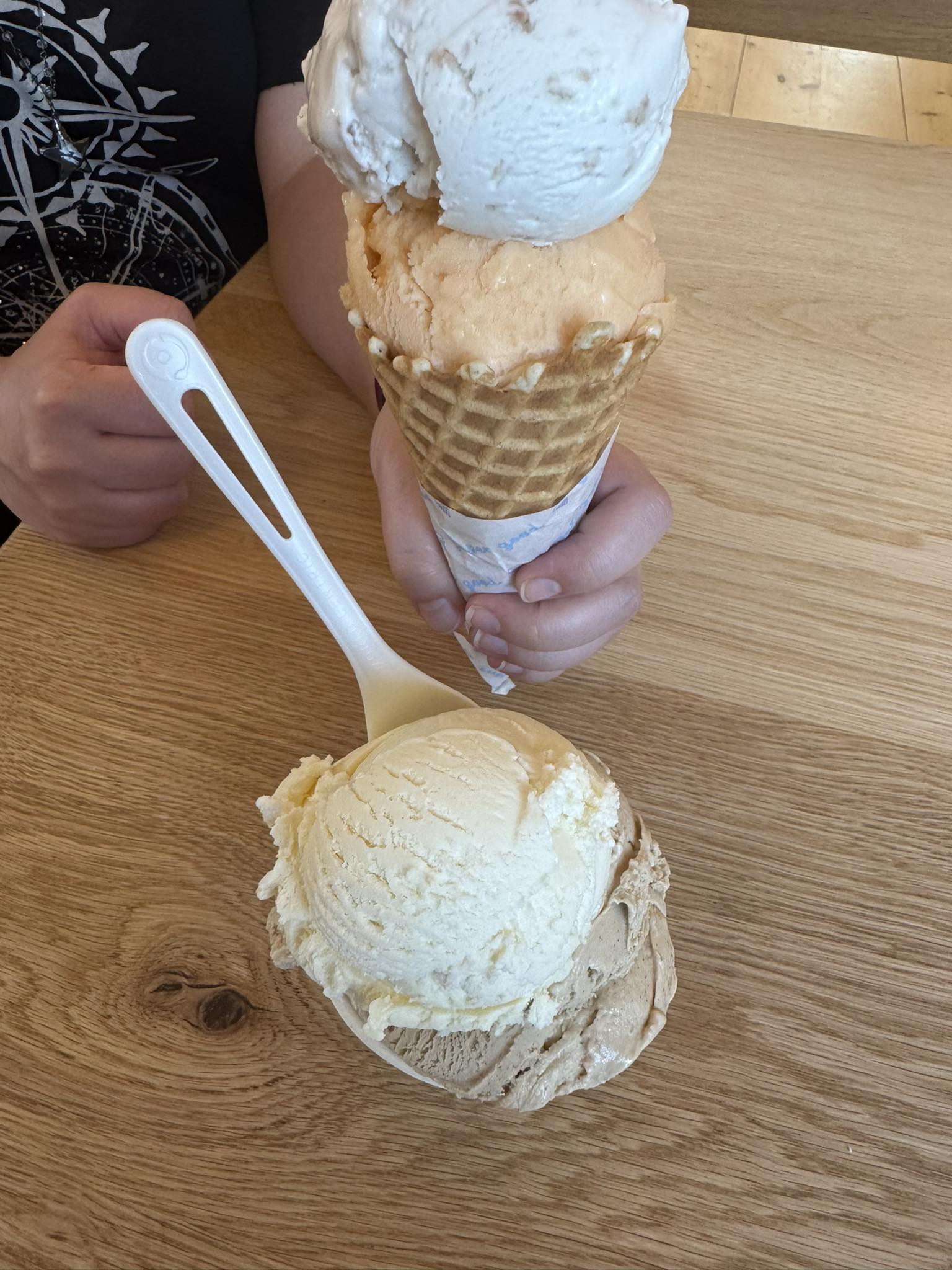 Mrs C got the Cold Brew Coffee and Sweetberry Honeysuckle in her cone: