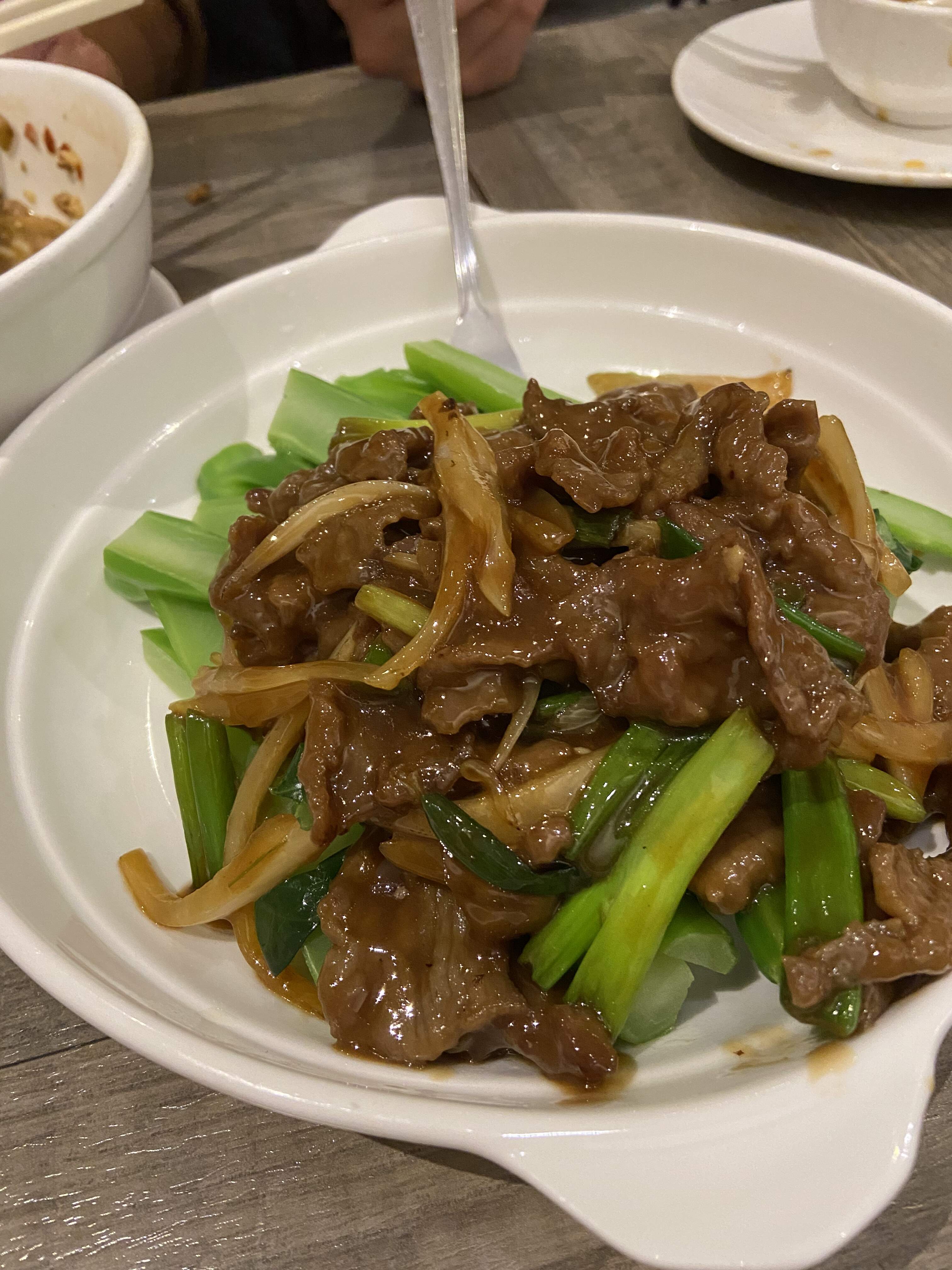 Stir fried sliced beef with Chinese Kale aka Gai Lan ( acceptable rendition of a Cantonese dish from a Northern kitchen! )