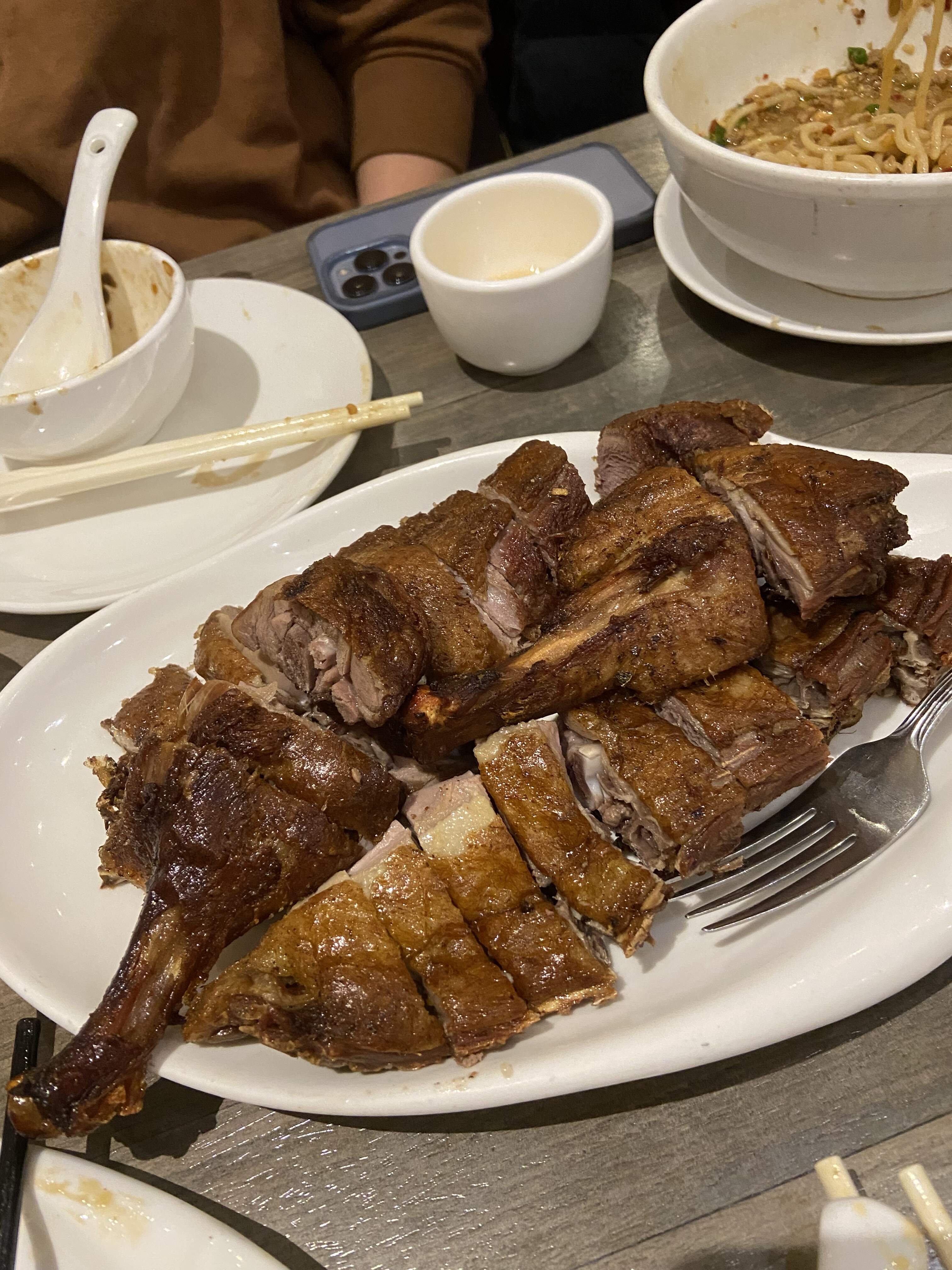 Crispy, smoked, Chinese style whole duck confit ( Crispy, crunchy, savory and salty. Great with beer! )