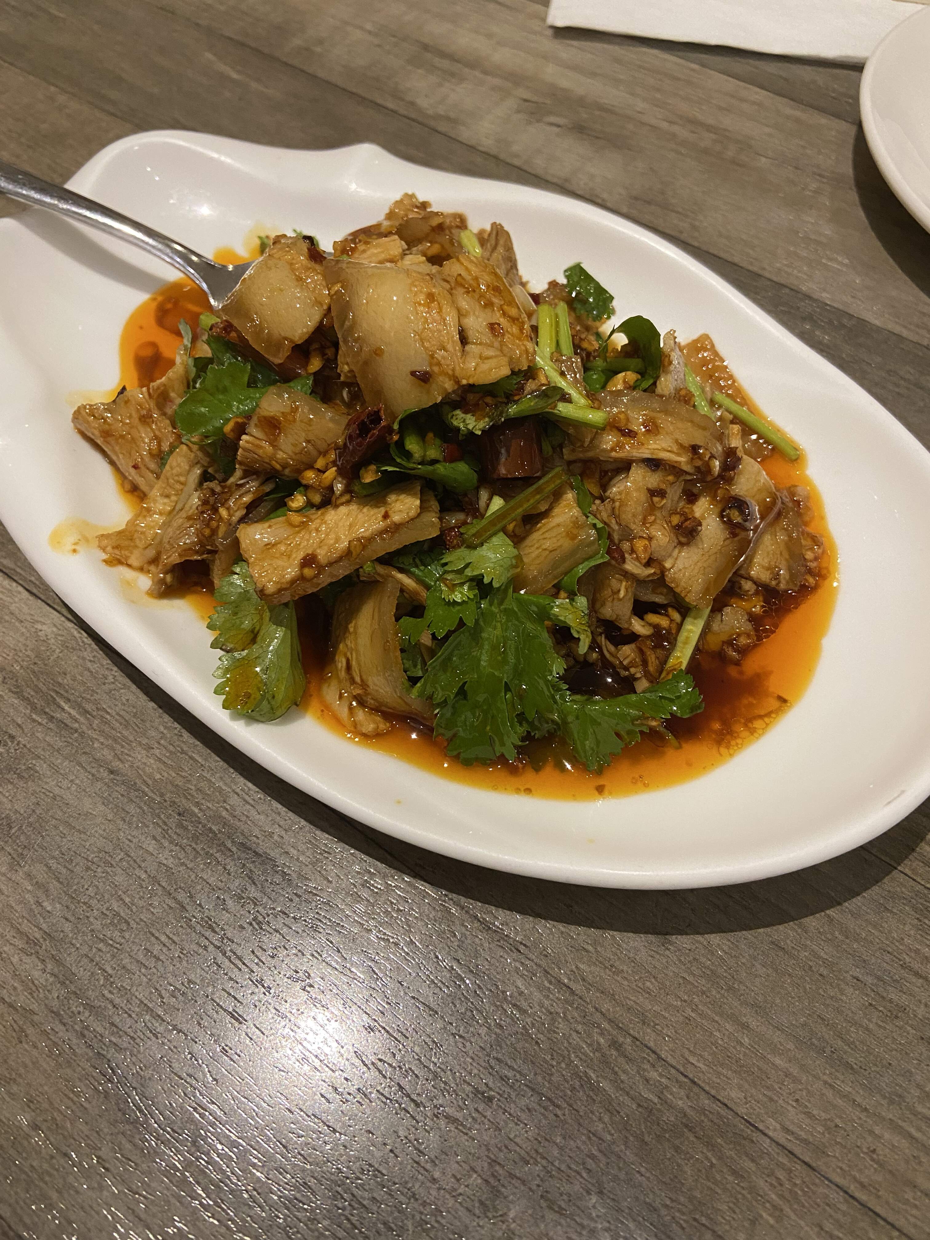‘ Award winning ‘ sliced pork in spicy garlic sauce and cilantro. Still as