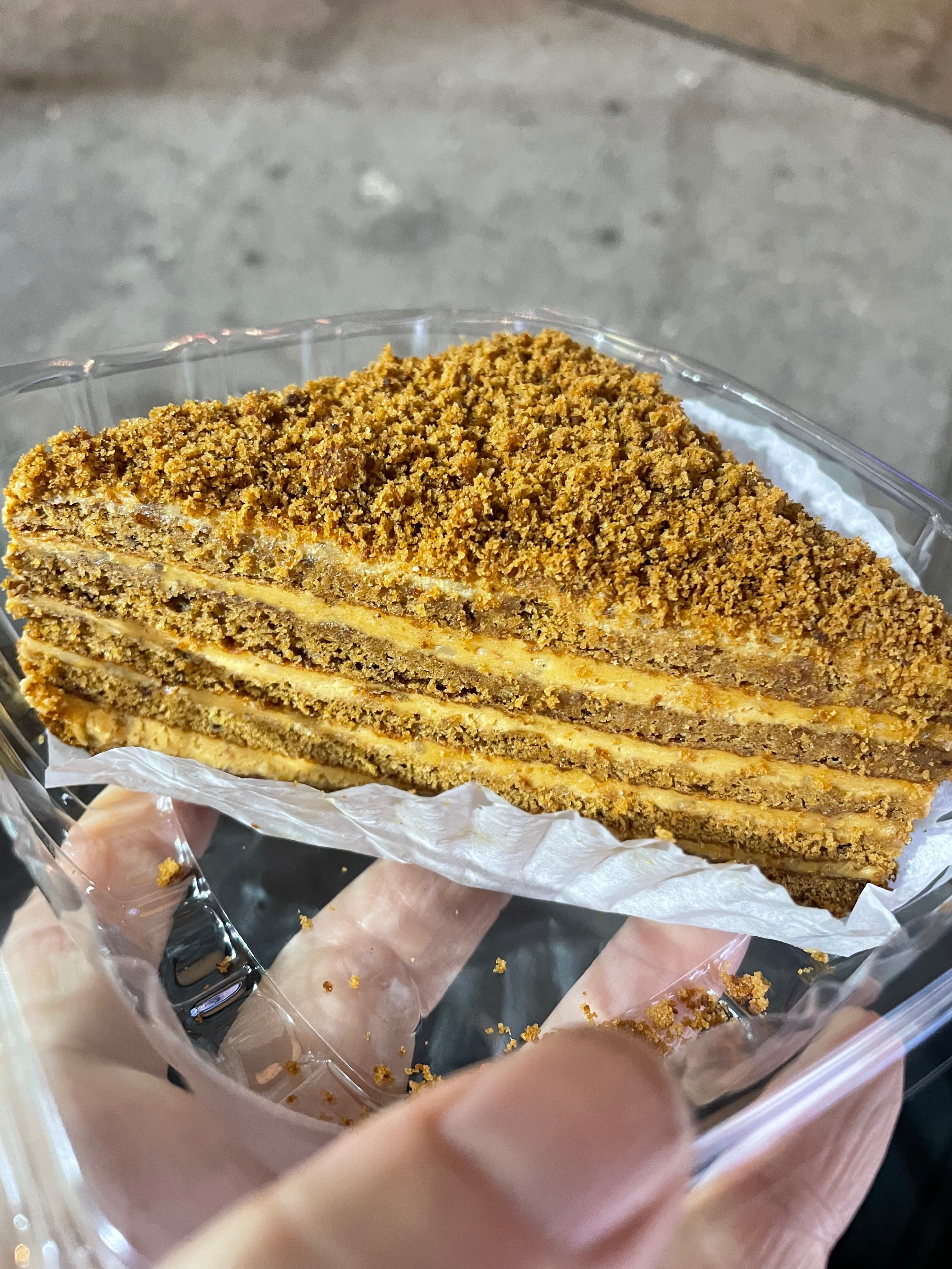 After eating these at a bus stop like an animal, I went back in and spied honey cake! I was so excited and bought some, but it was not delicious, so I reluctantly threw half of it away.