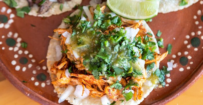 Look closer, though, and you’ll see that the list of stews for gorditas and meats for tacos aren’t just your run-of-the-mill carnitas or carne asada. There’s chicharrón en salsa roja, a braised pork skin preparation that Chairez says is a typical gordita filling in Zacatecas. There’s a stew of pork and nopales that is a specialty of her hometown of Valparaíso. On weekends, there’s tender beef barbacoa done as a guisado (stew), a triumph of slow-cooking that Chairez serves with enormous handmade tortillas, each one big enough to feed a family of four. And for Lent, she started offering a Zacatecan-style chiles relleno, served with a side of stewed nopales, and gorditas filled with scrambled eggs stained red with dried chiles—a traditional Valparaíso breakfast dish. Everything tastes even better with a squirt of the restaurant’s smoky chile de árbol salsa.