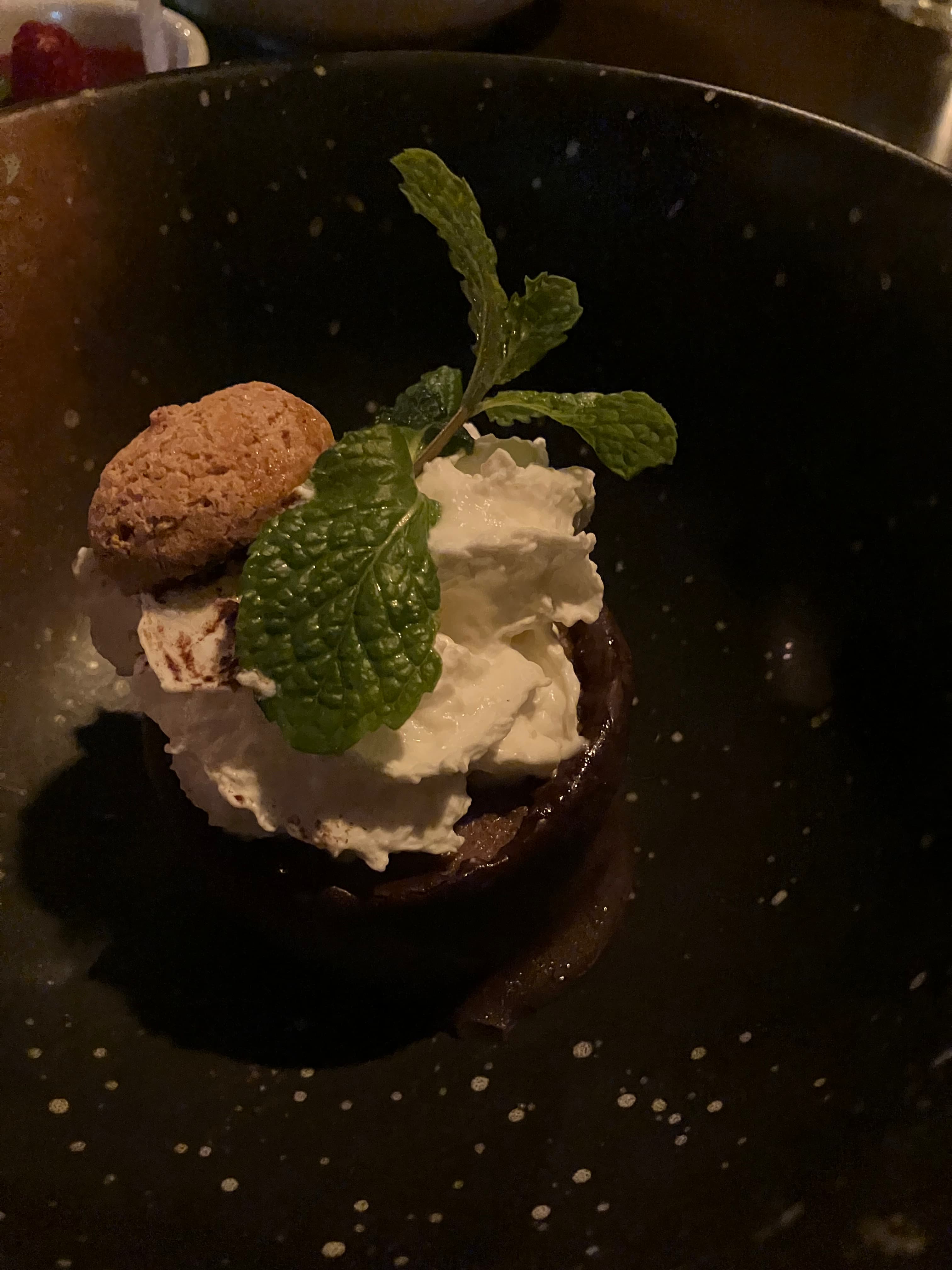 Fragalotti - strawberry filled cocoa pays with creme anglaise, strawberries, and crumbled chocolate cookies - this needed more salt and or sugar in the pasta dough