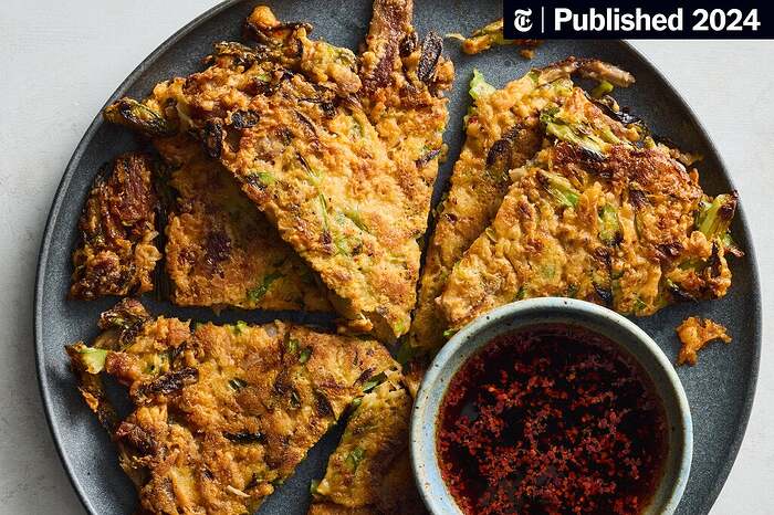 I went to take a look at the ingredients & method vs what I usually do, and these two other kimchi pancake ideas popped up that look really good – one uses noodles (I might try angel hair instead of rice noodles) and the other is quite timely for Thanksgiving leftovers (maybe even to use up stuffing