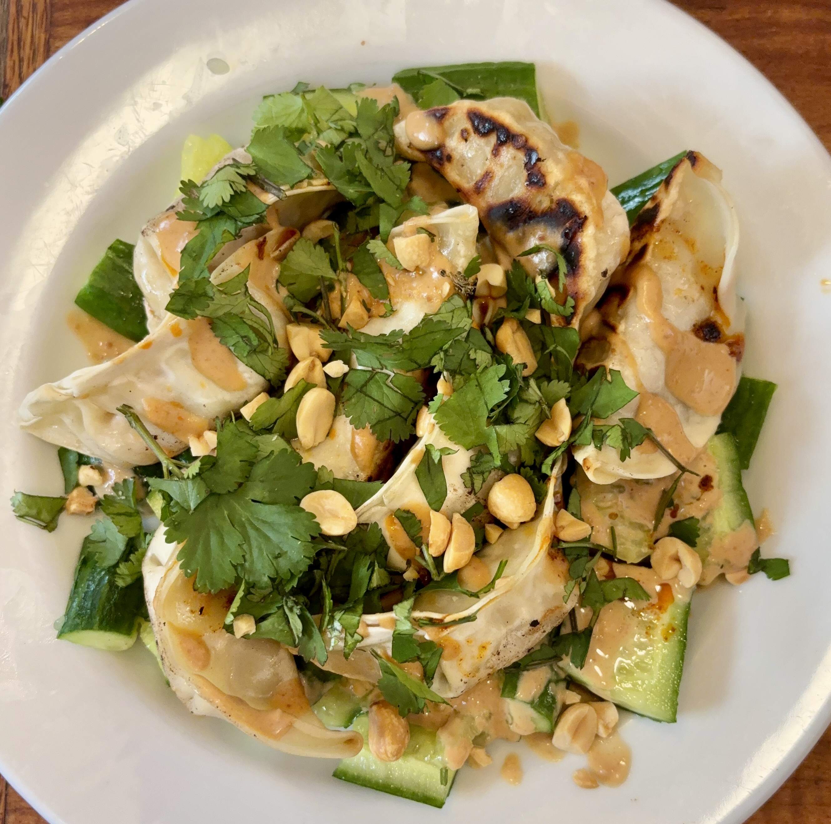 DUMPLING AND SMASHED CUCUMBER SALAD WITH PEANUT SAUCE (gift link)