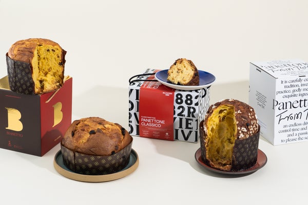 The Panettone Alla Elena with apricot, dark chocolate, and orange.