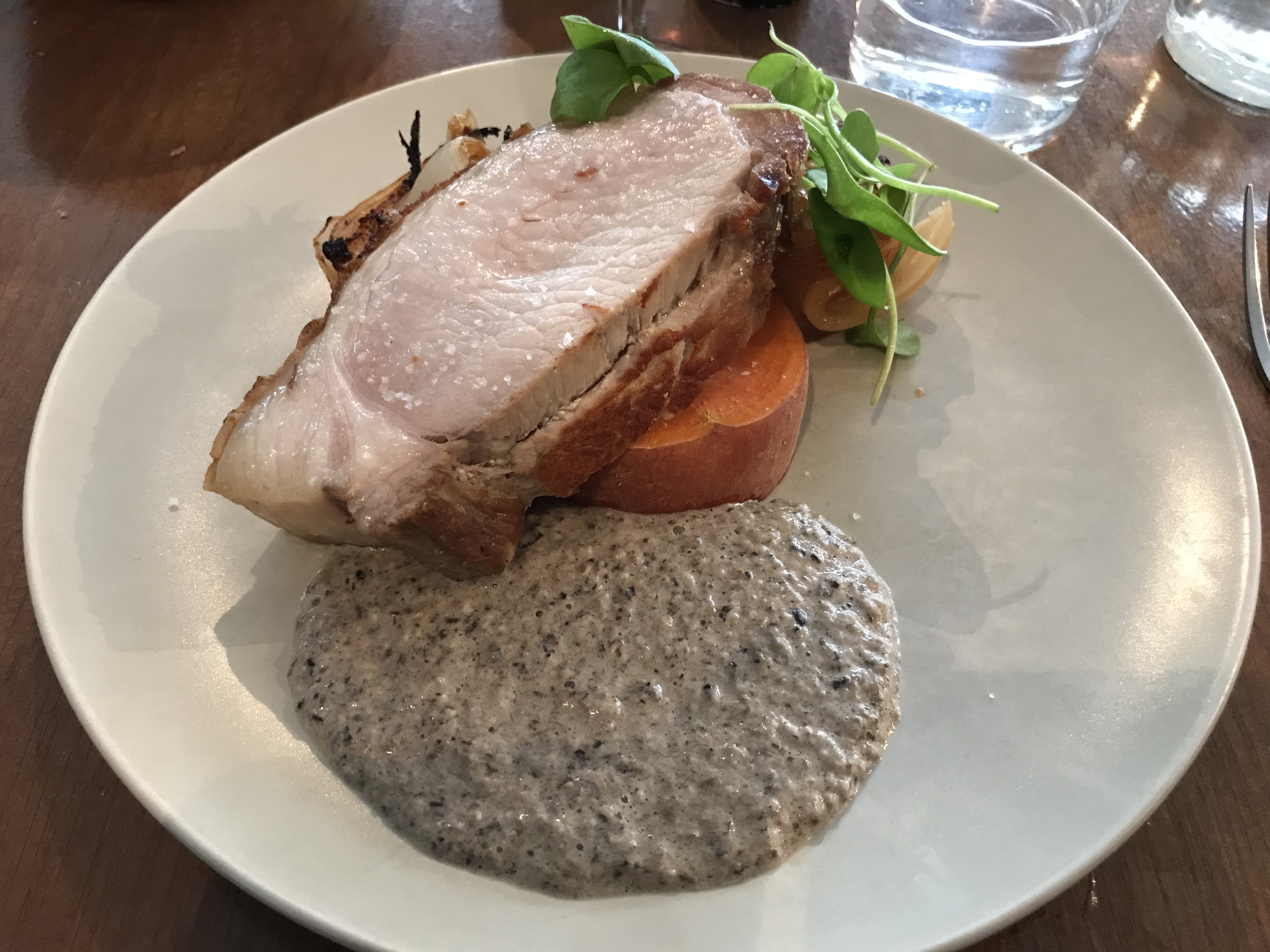 Plats: Roti de cochon de l’Aveyron, champignons, patate douce & oignons confits - Roasted Aveyron pork, mushroom, sweet potatoes and onion confit