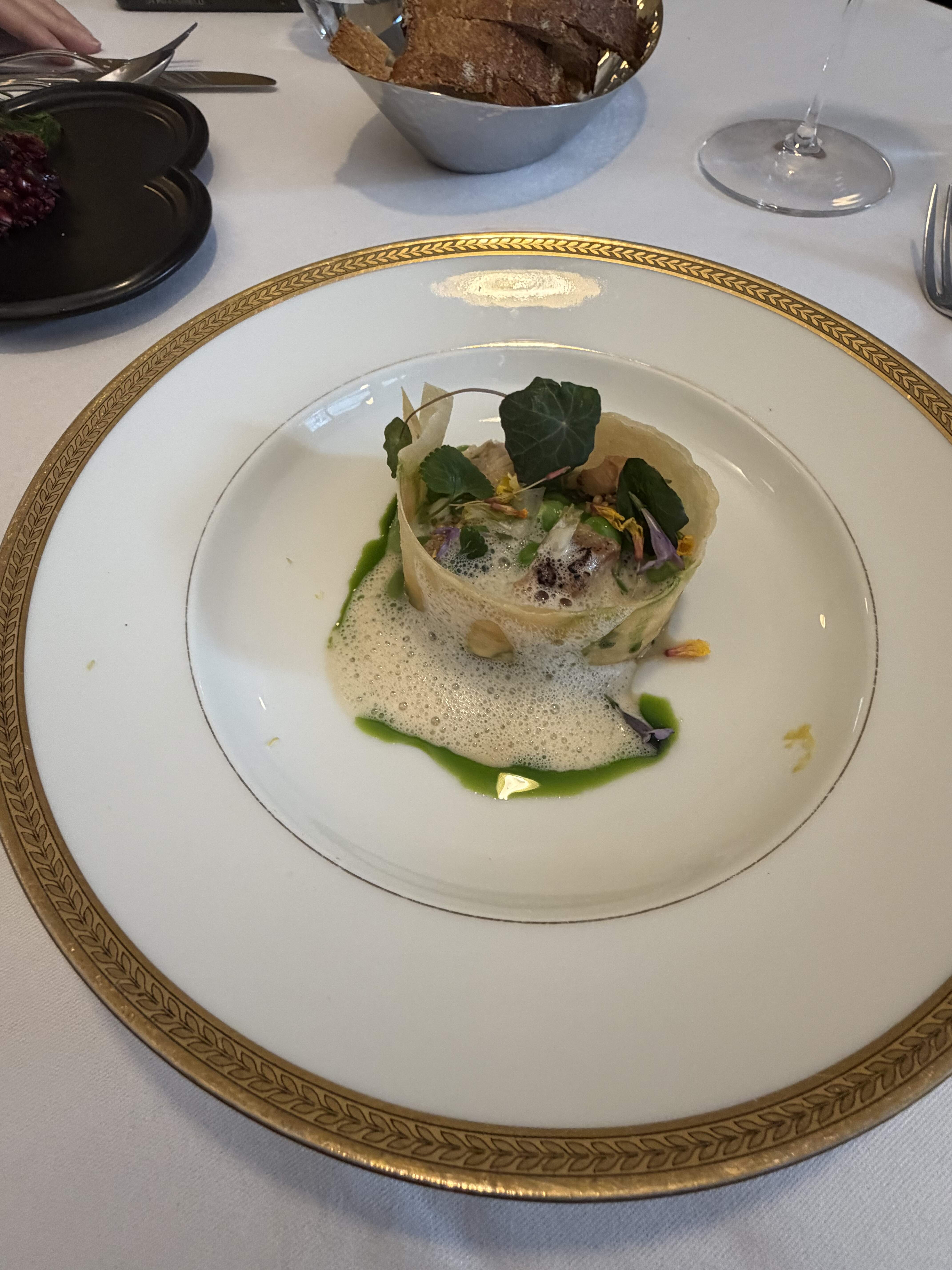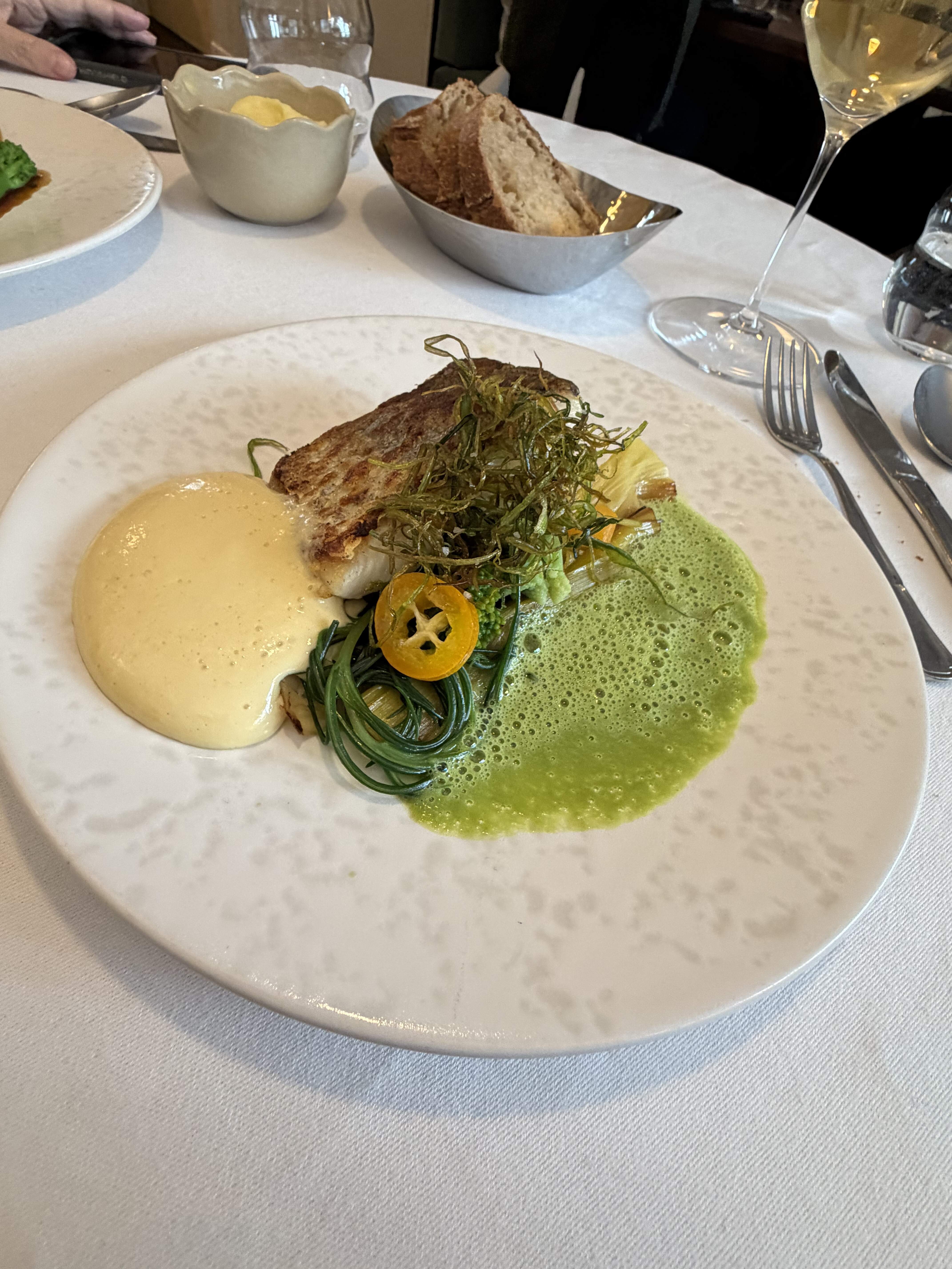 My starter of peas and some lightly smoked eel was excellent.