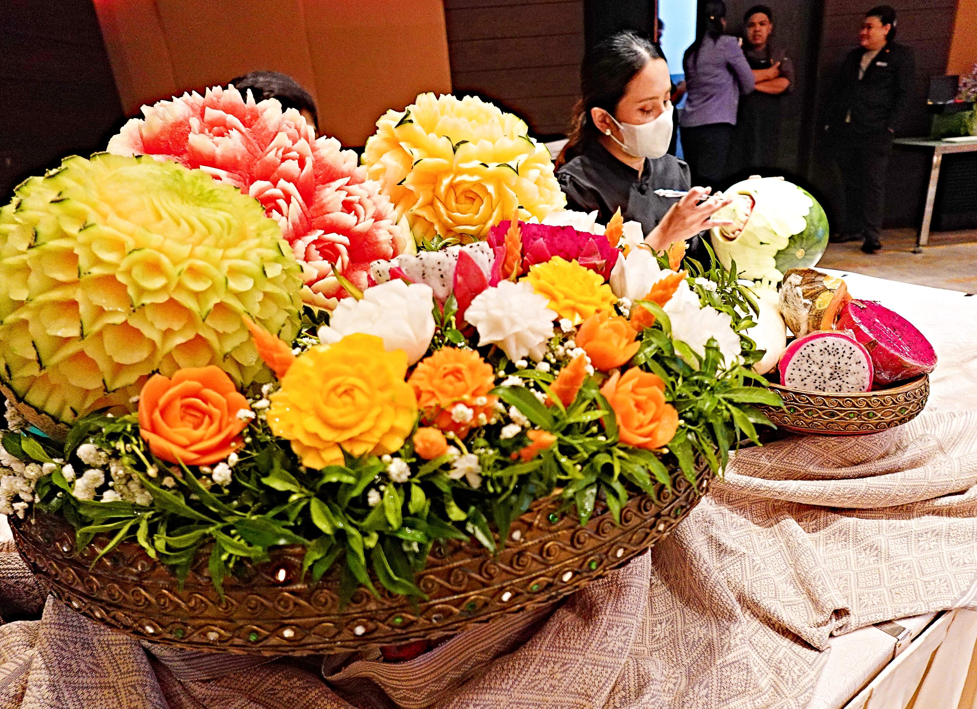 - The Royal Thai Consulate-General’s in-house chef and kitchen staff contributed some very canapes, besides demonstrating the art of fruit carving.