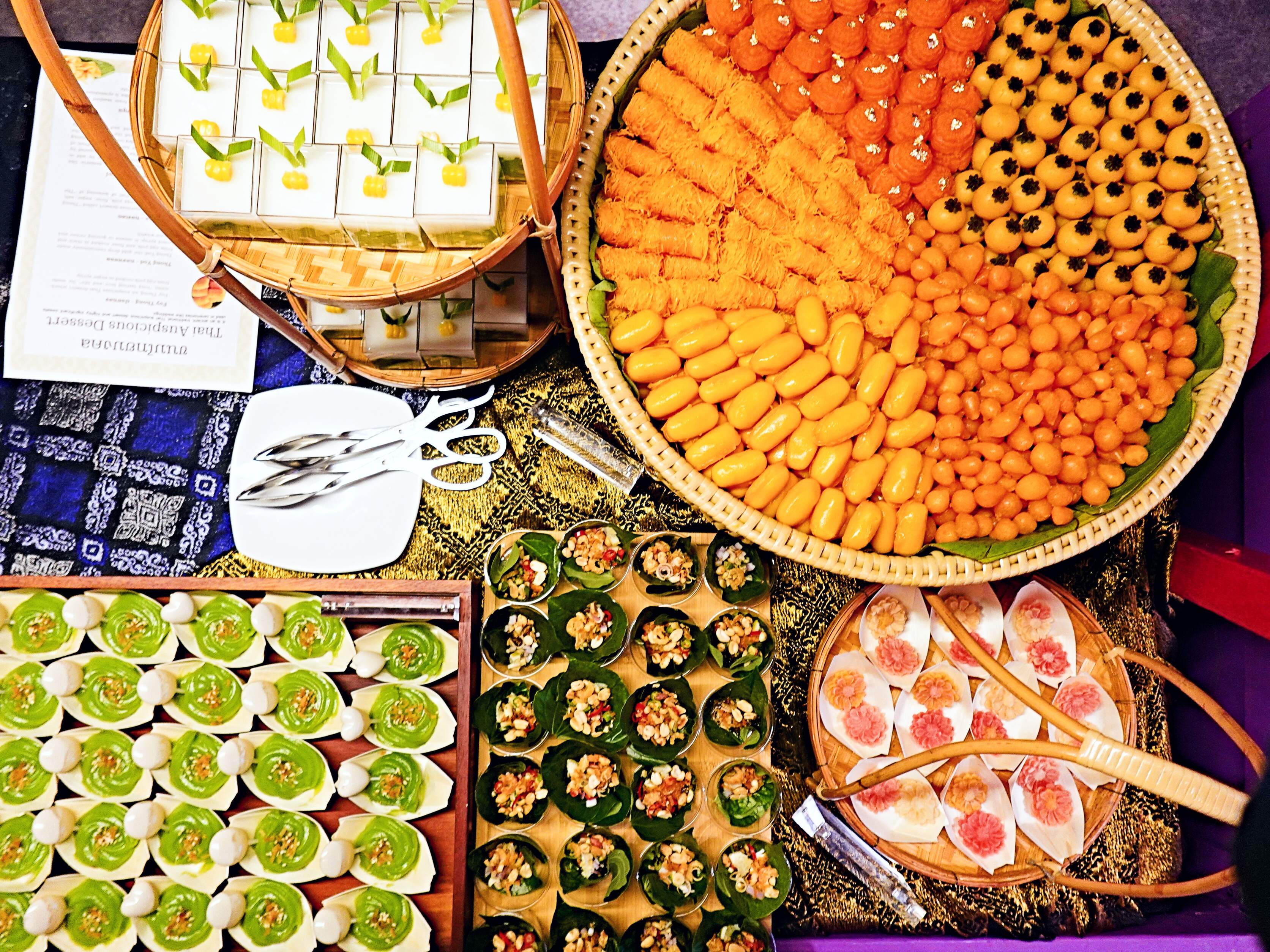 - The Thai - with its breathtaking selection of Thai desserts, plus savory canapes like miang kham and popia tod.