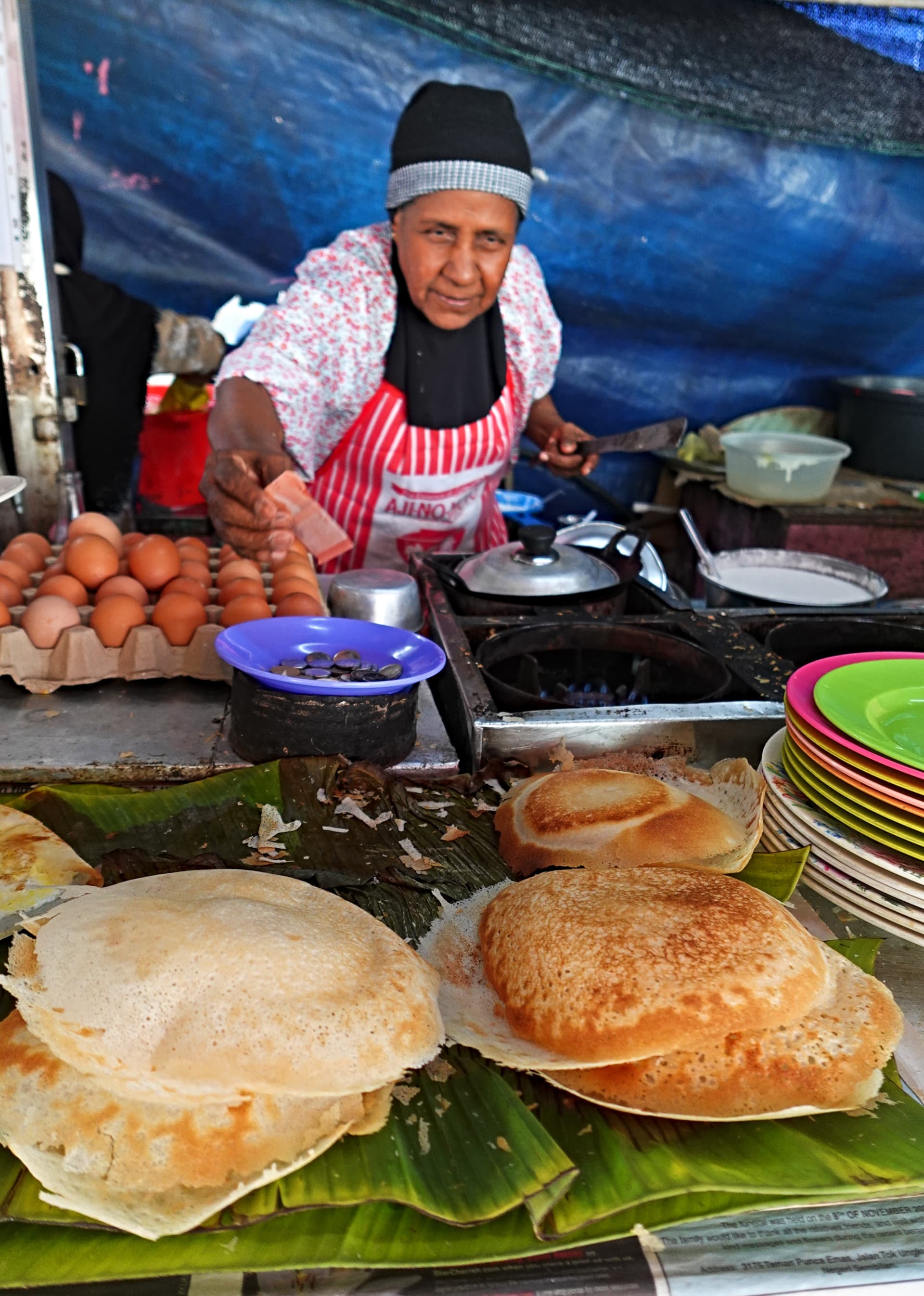 For breakfast, we chose Mdm Aminah Majid’s 28-year-old appam kiosk on Queen Street, a Little India icon of sorts. It’s been featured in numerous programs on TV, including Episode 8 of the BBC series “Ainsley Harriott’s Street Food”.